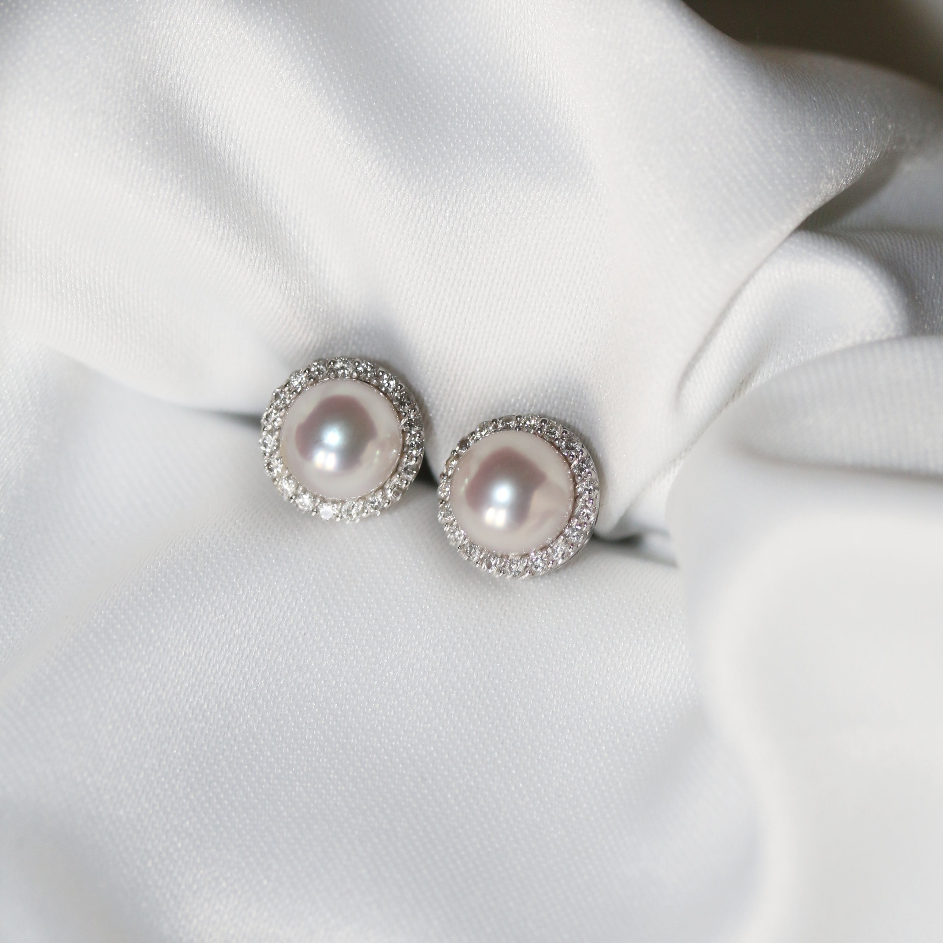 Home/£1500 & under/9ct White Gold Pearl and Diamond Cluster Earrings