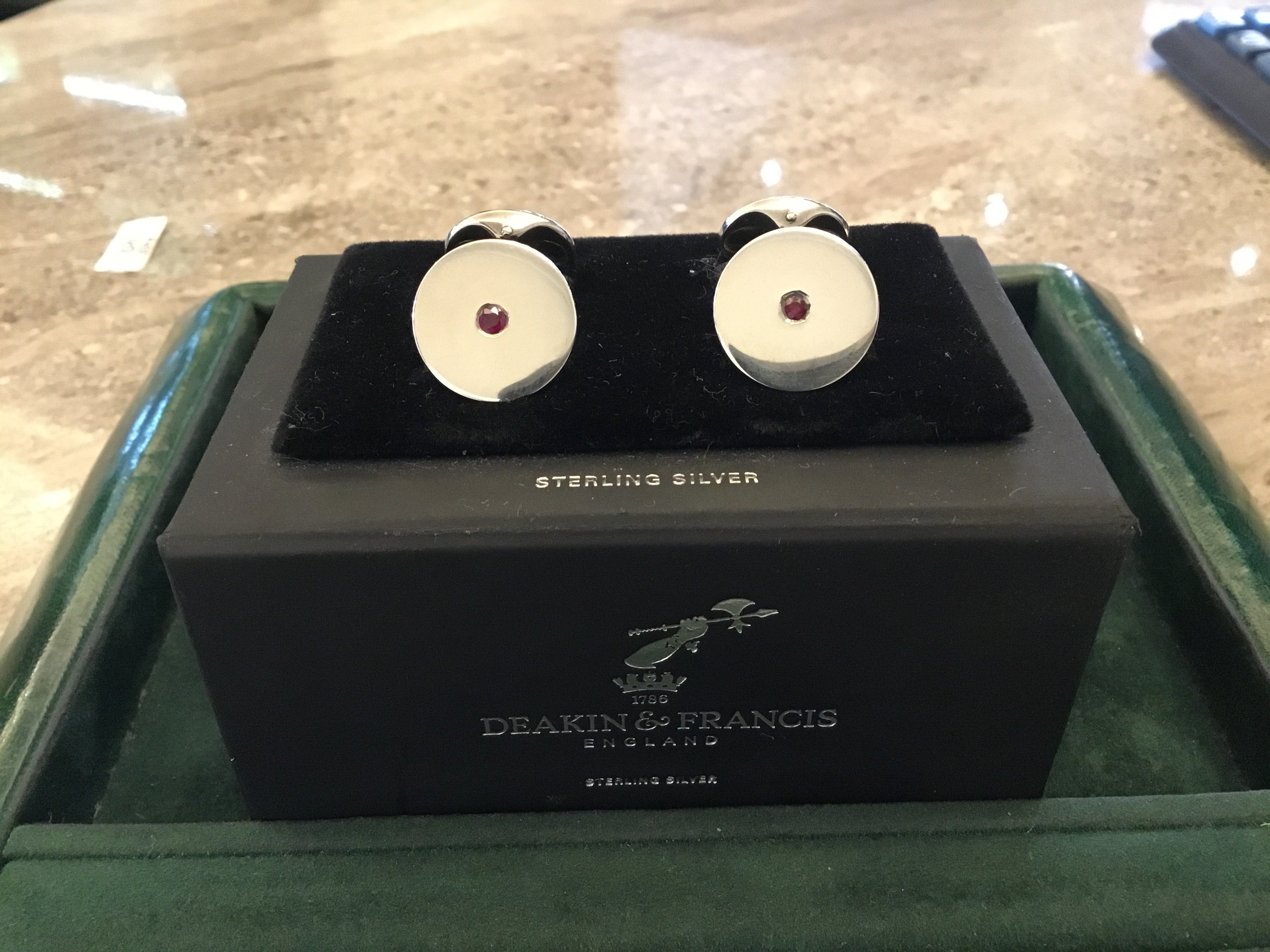 A pair of silver ruby cufflinks by Deakin & Francis.