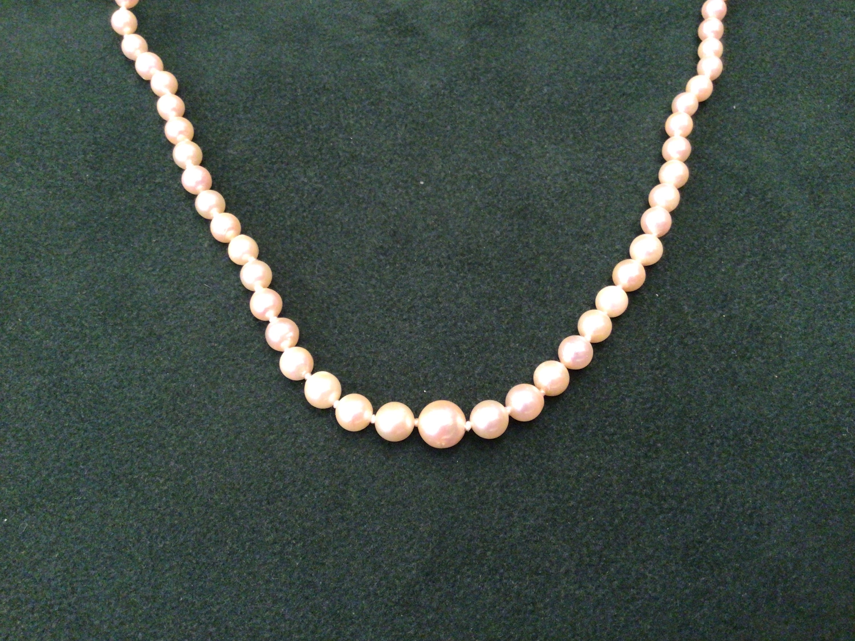Vintage graduated ivory coloured pearl necklace 20" with a silver and marcasite clasp.