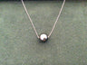 A dark grey Tahitian pearl pendant threaded onto an 18ct white gold fine trace link chain.