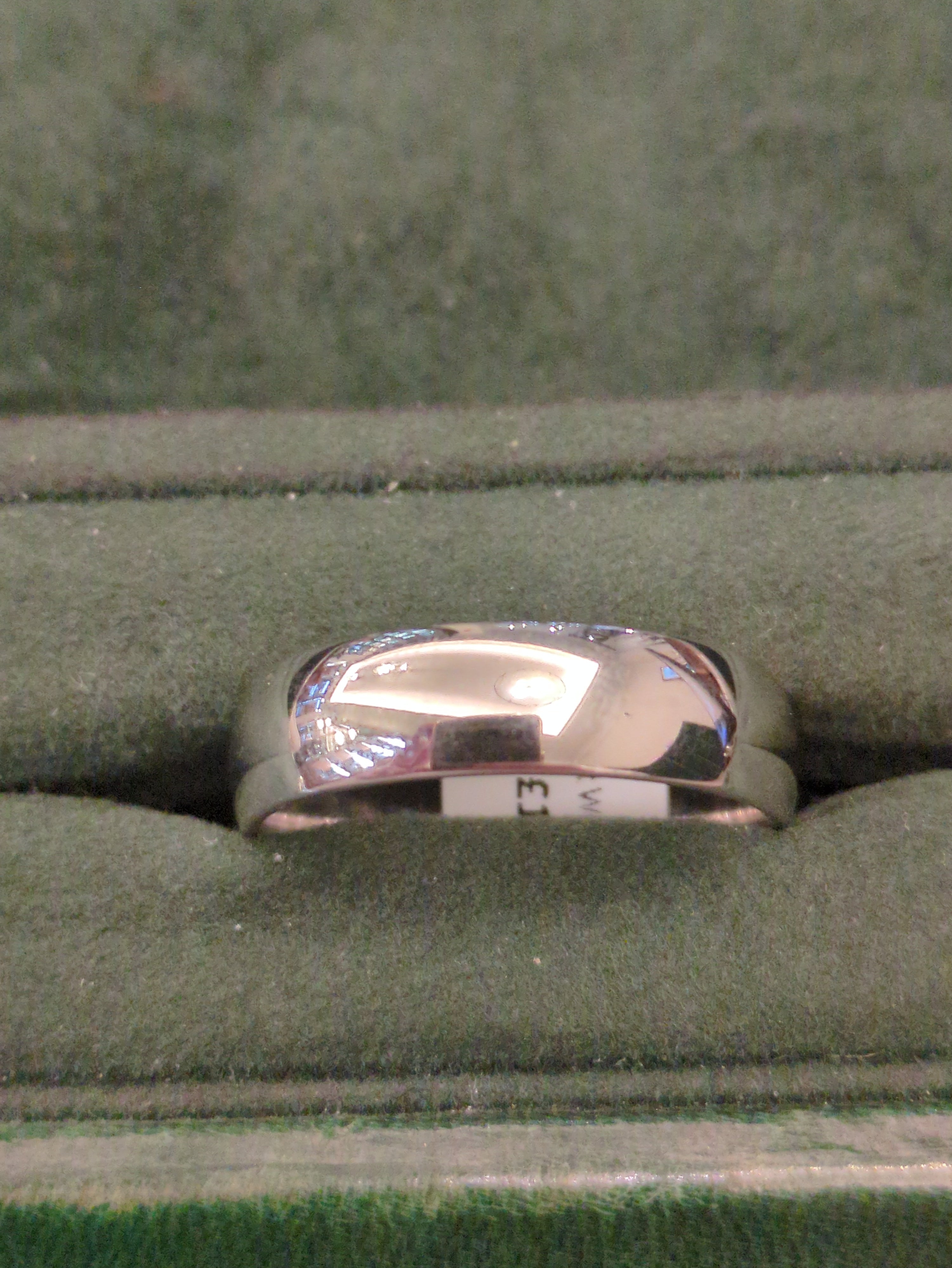 An 18ct white gold court shaped wedding band of 6mm in width.