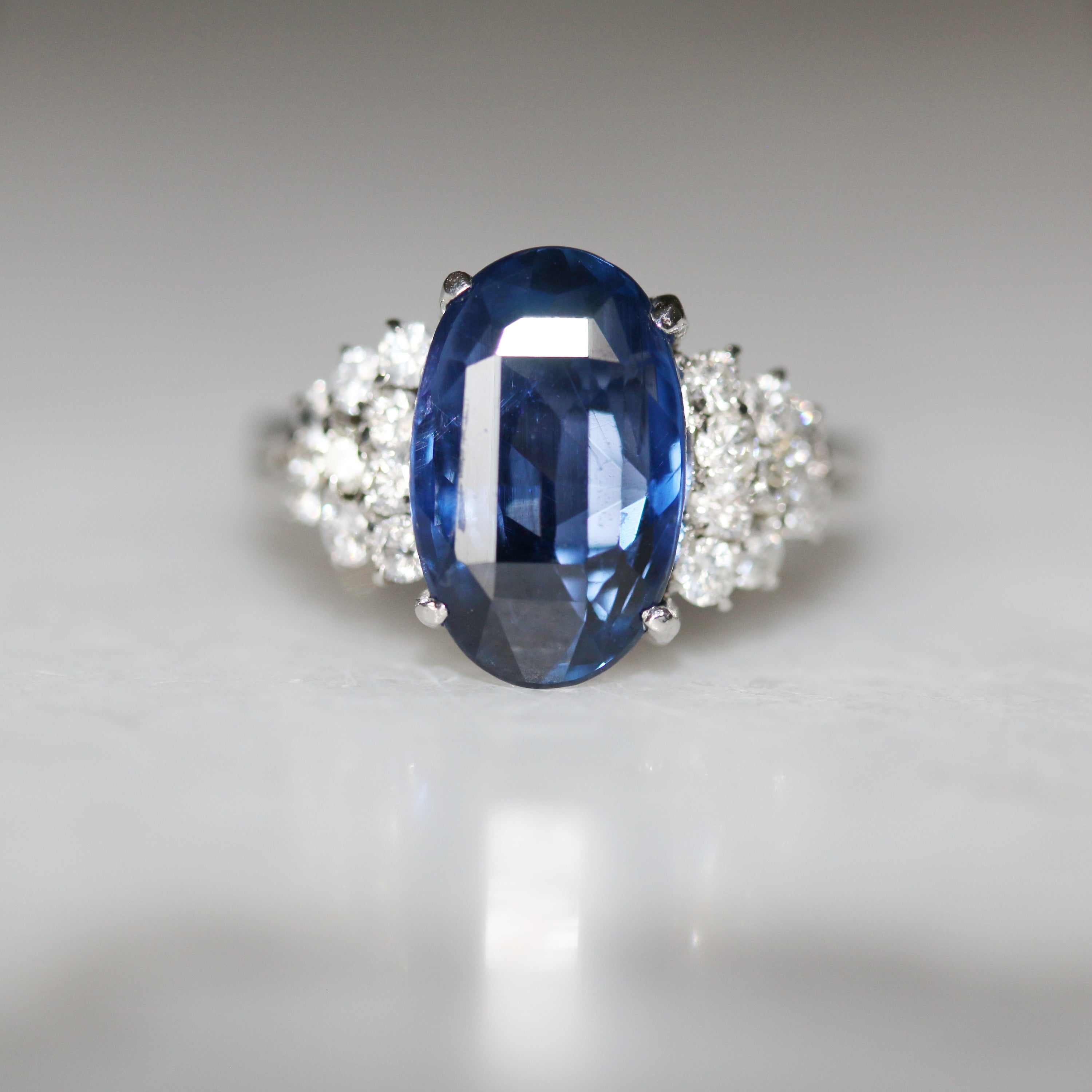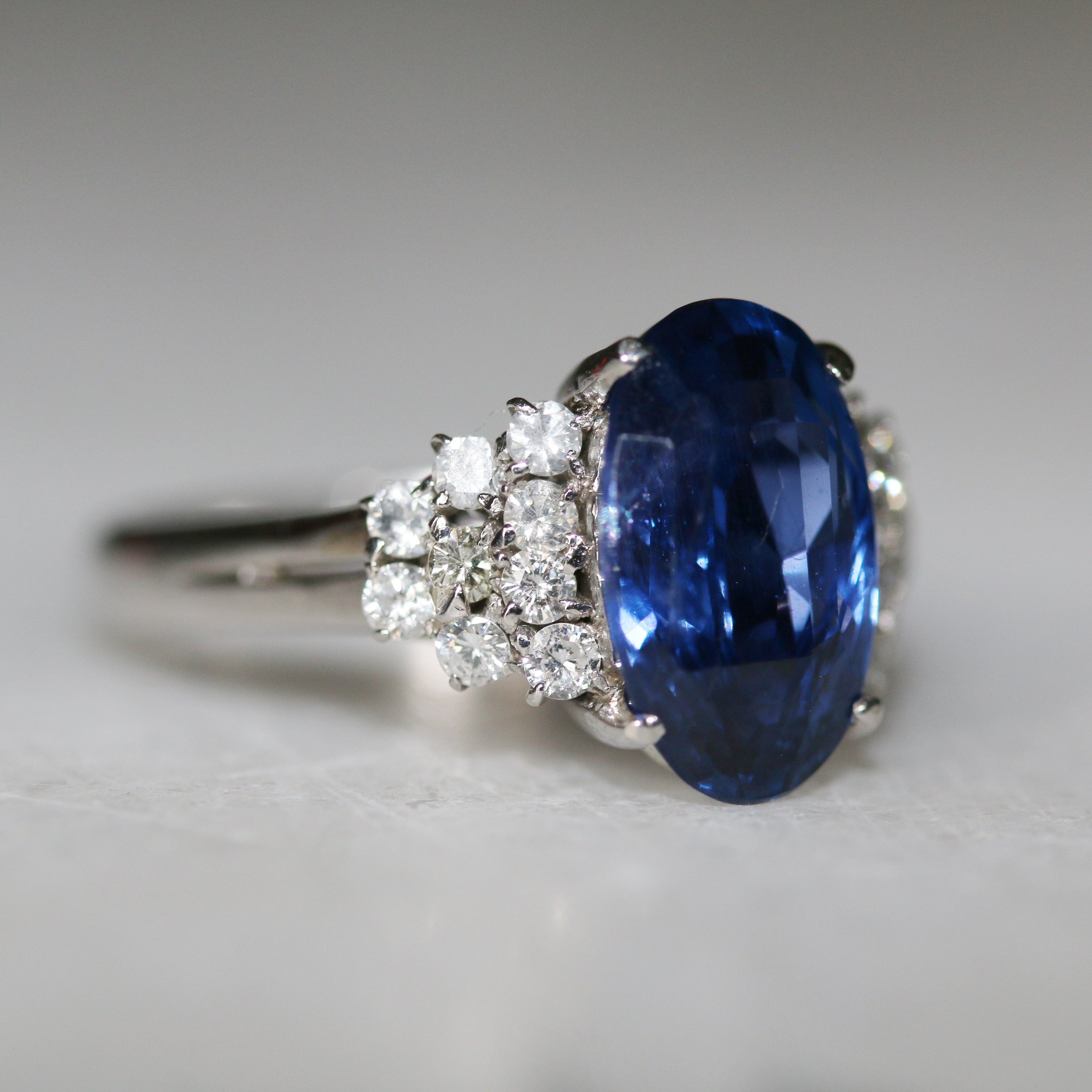 Elevate your jewellery collection with this exquisite platinum dress ring, showcasing a stunning 4.91-carat Ceylon sapphire of exceptional quality. Complemented by 0.50cts of sparkling diamonds, this piece combines timeless elegance with sophisticated design. The sapphire's natural, unheated origin ensures authentic beauty and lasting value, making it a treasured investment for special occasions or everyday luxury.