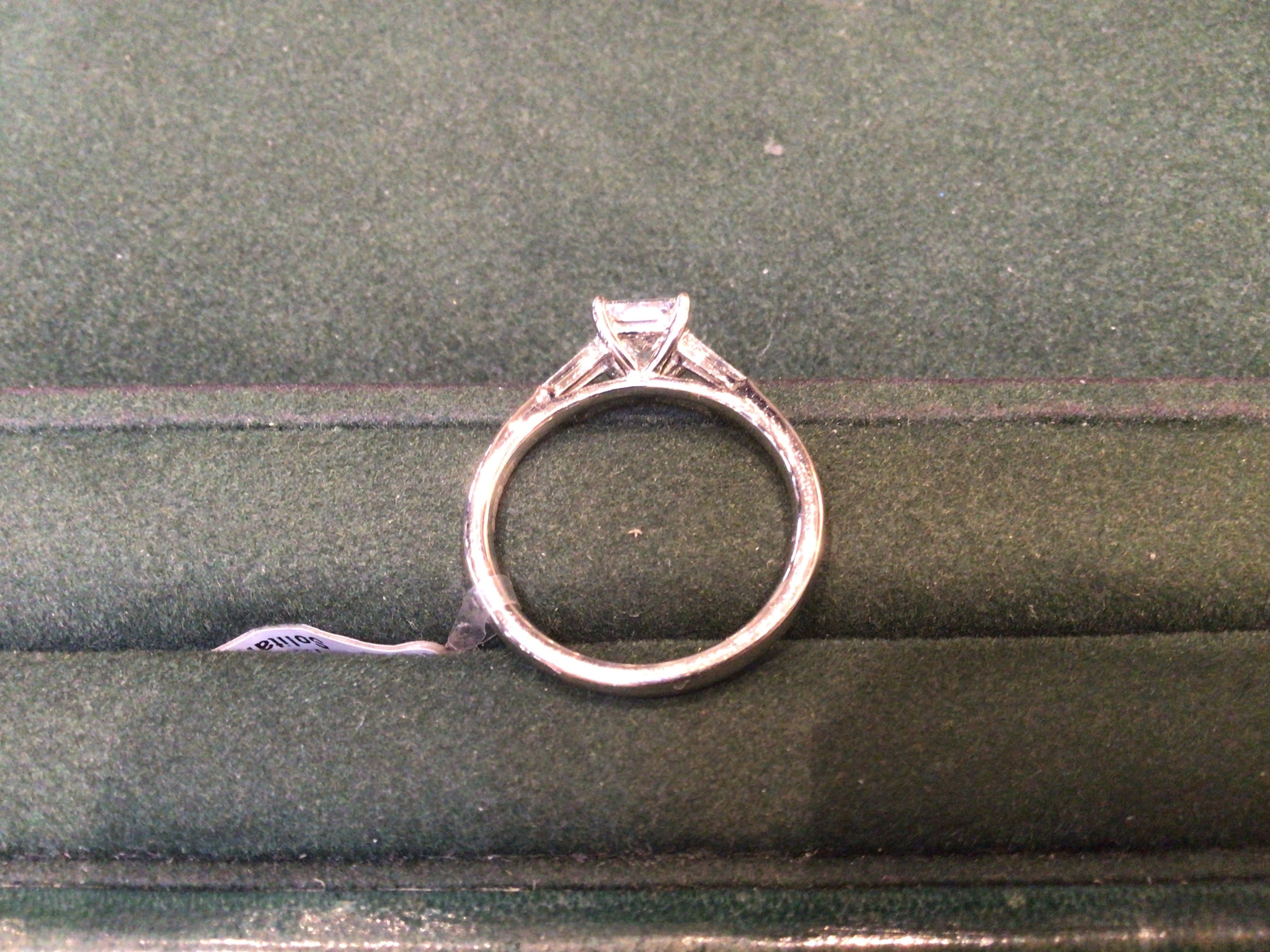0.70ct princess cut diamond set with a total weight of approximately 0.18ct baguette cut diamonds on the shoulders.