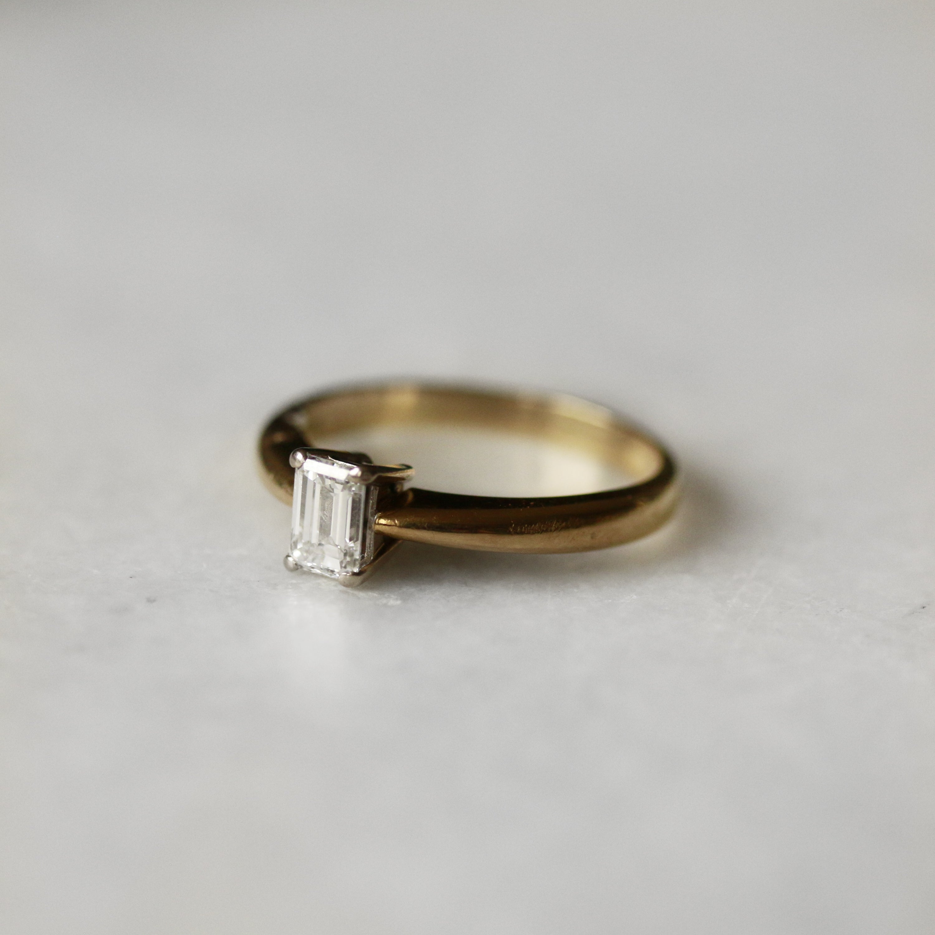 18ct Yellow Gold Emerald Cut Diamond Solitaire Ring