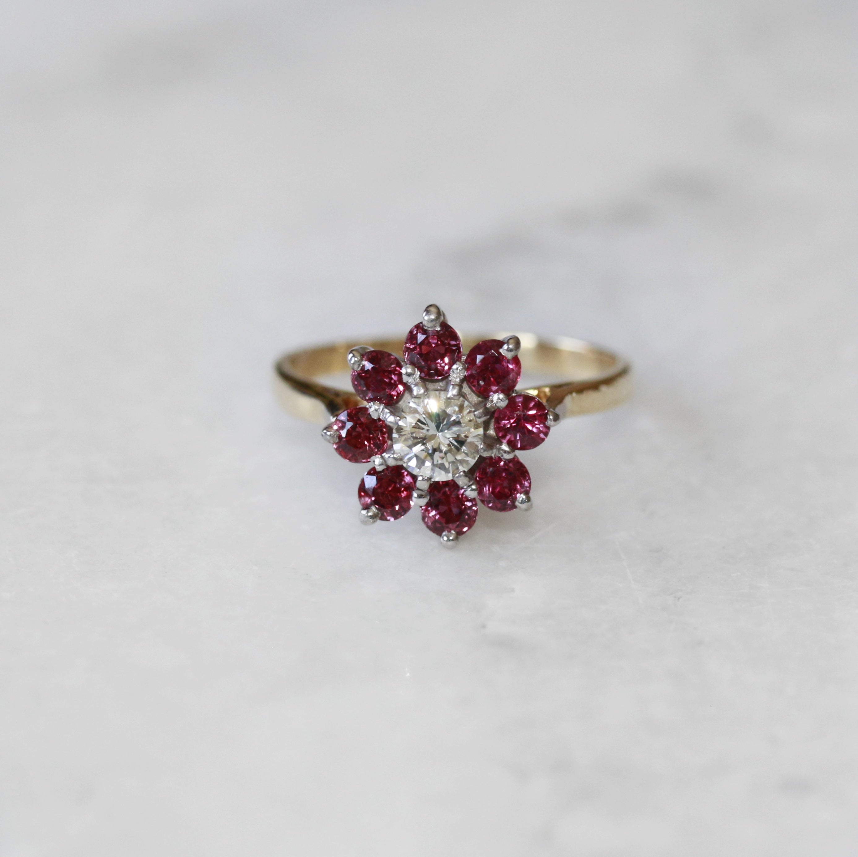 18ct Yellow Gold Ruby & Diamond Daisy Cluster Ring