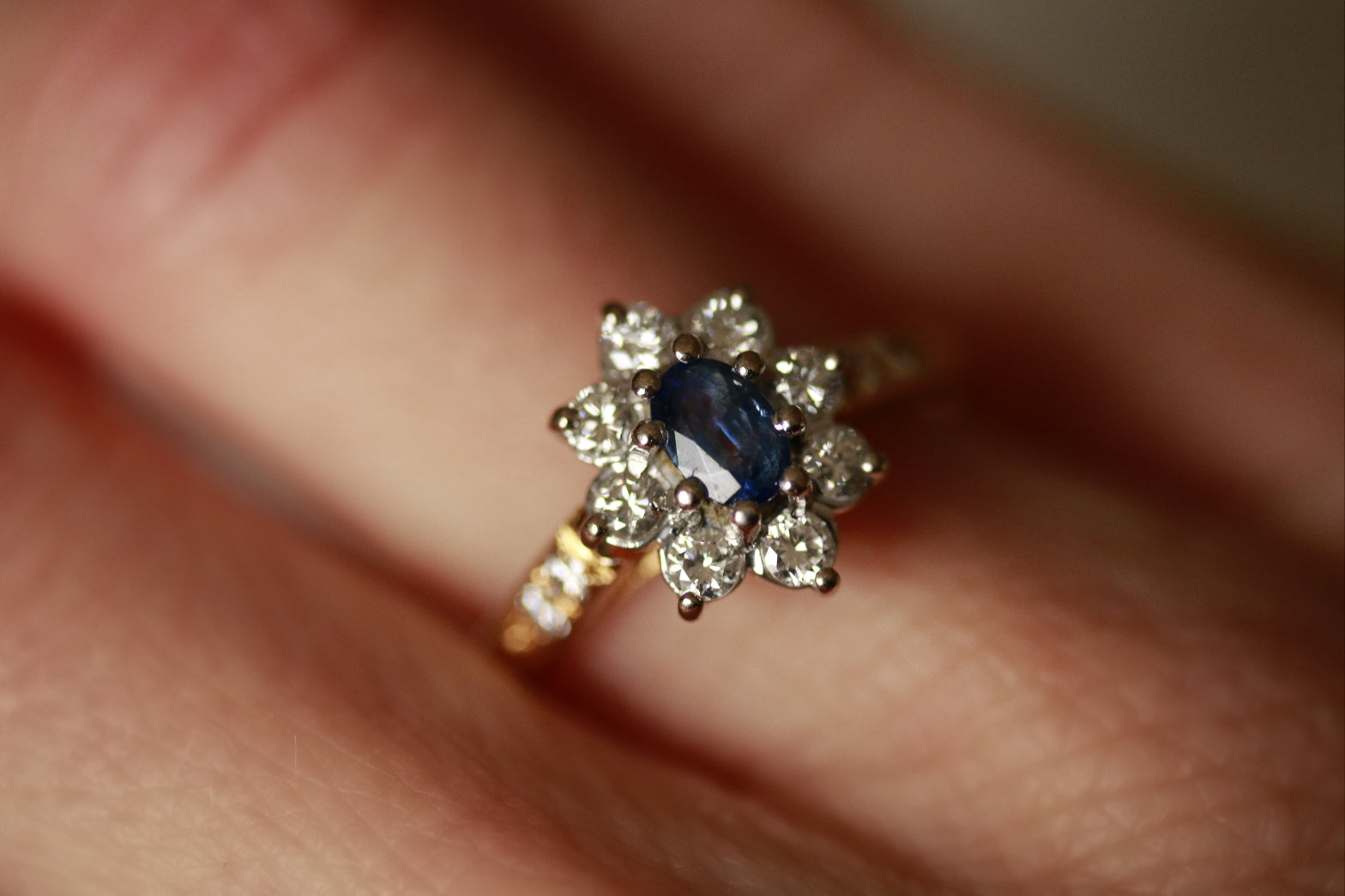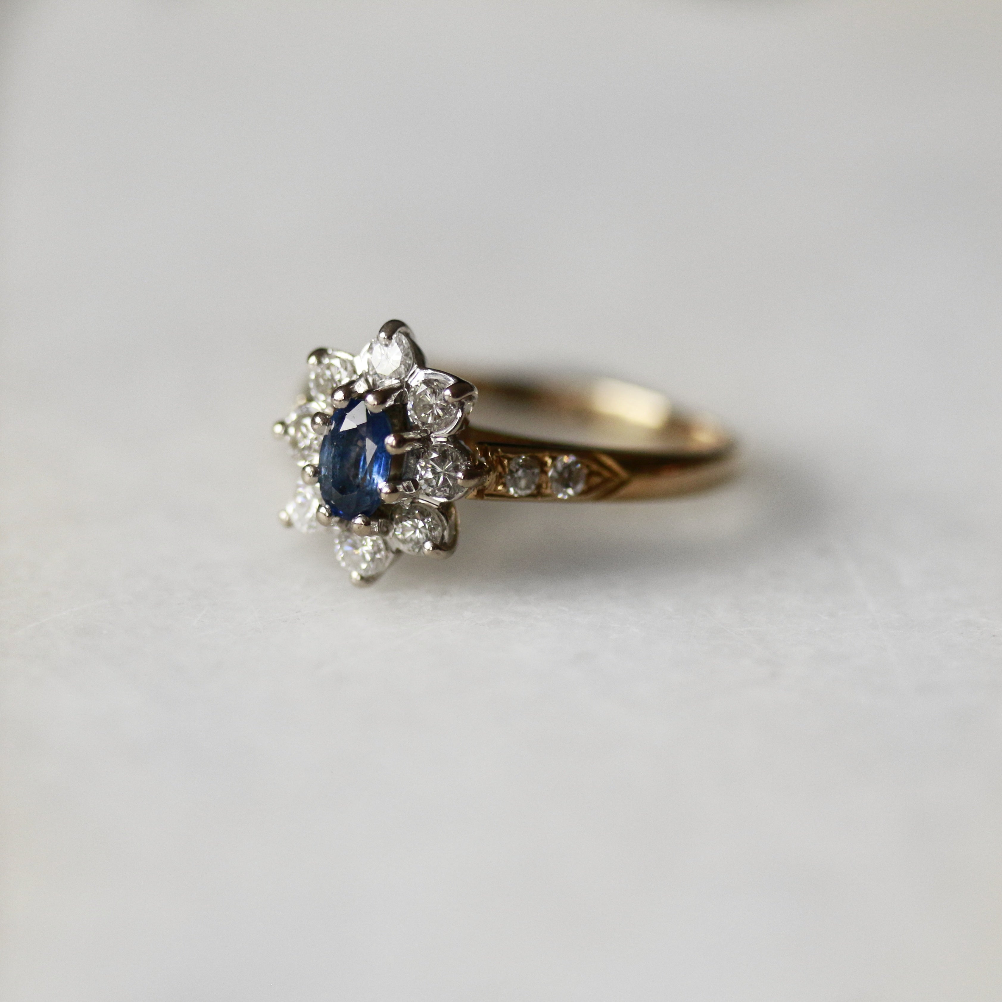 18ct Yellow Gold Sapphire & Diamond Cluster Ring