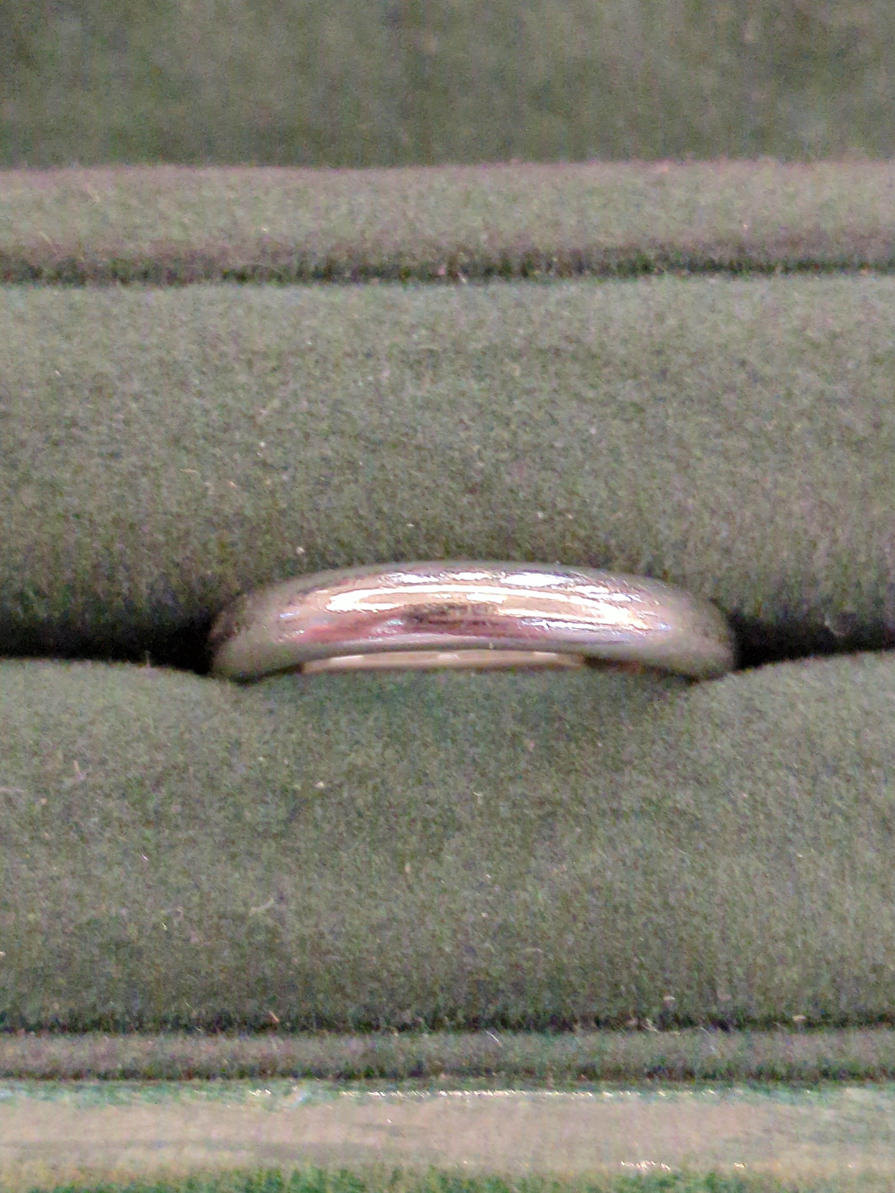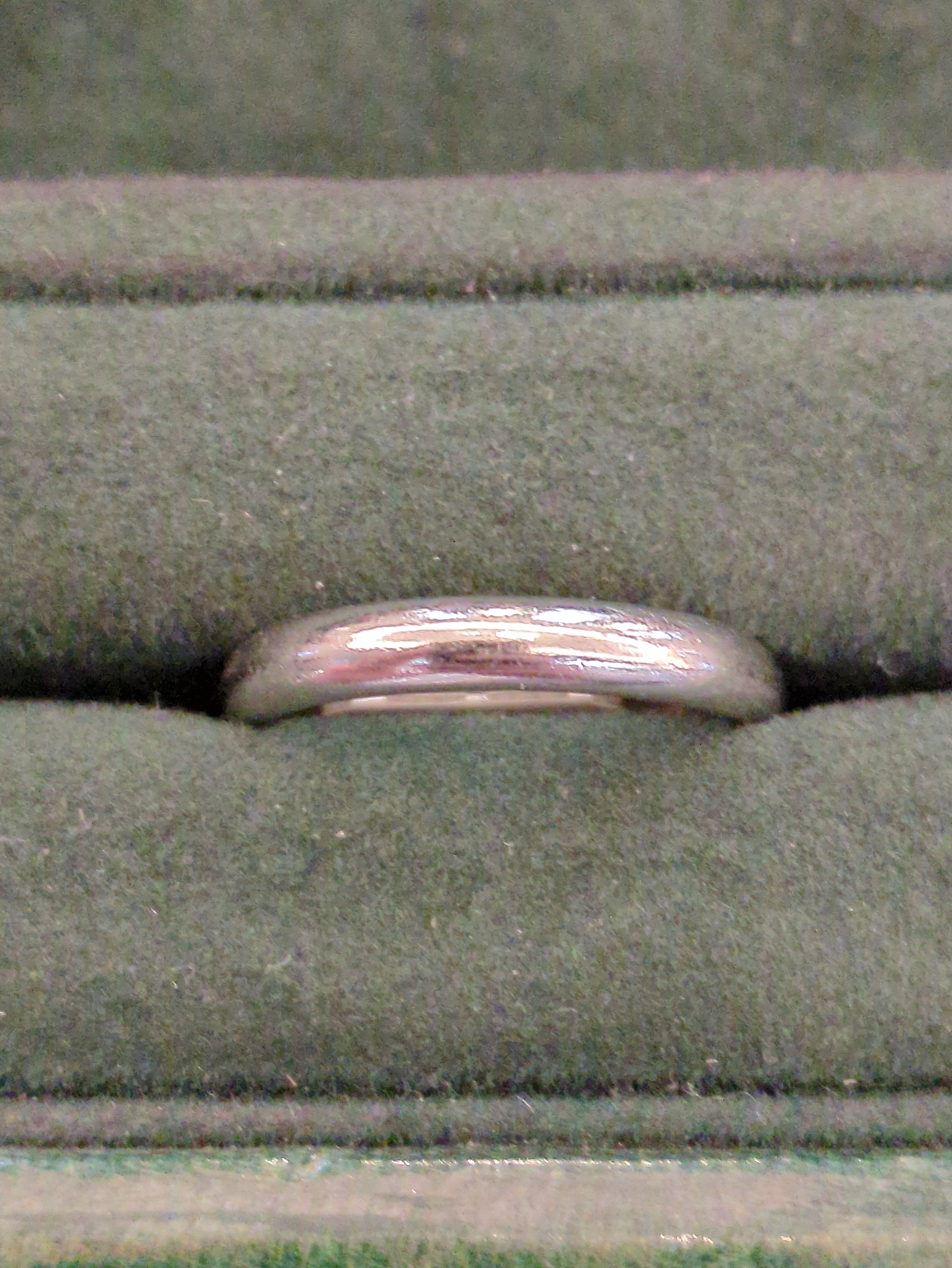 A platinum soft court shaped wedding band with a width of approximately 3mm. Weight approximately 3.5g