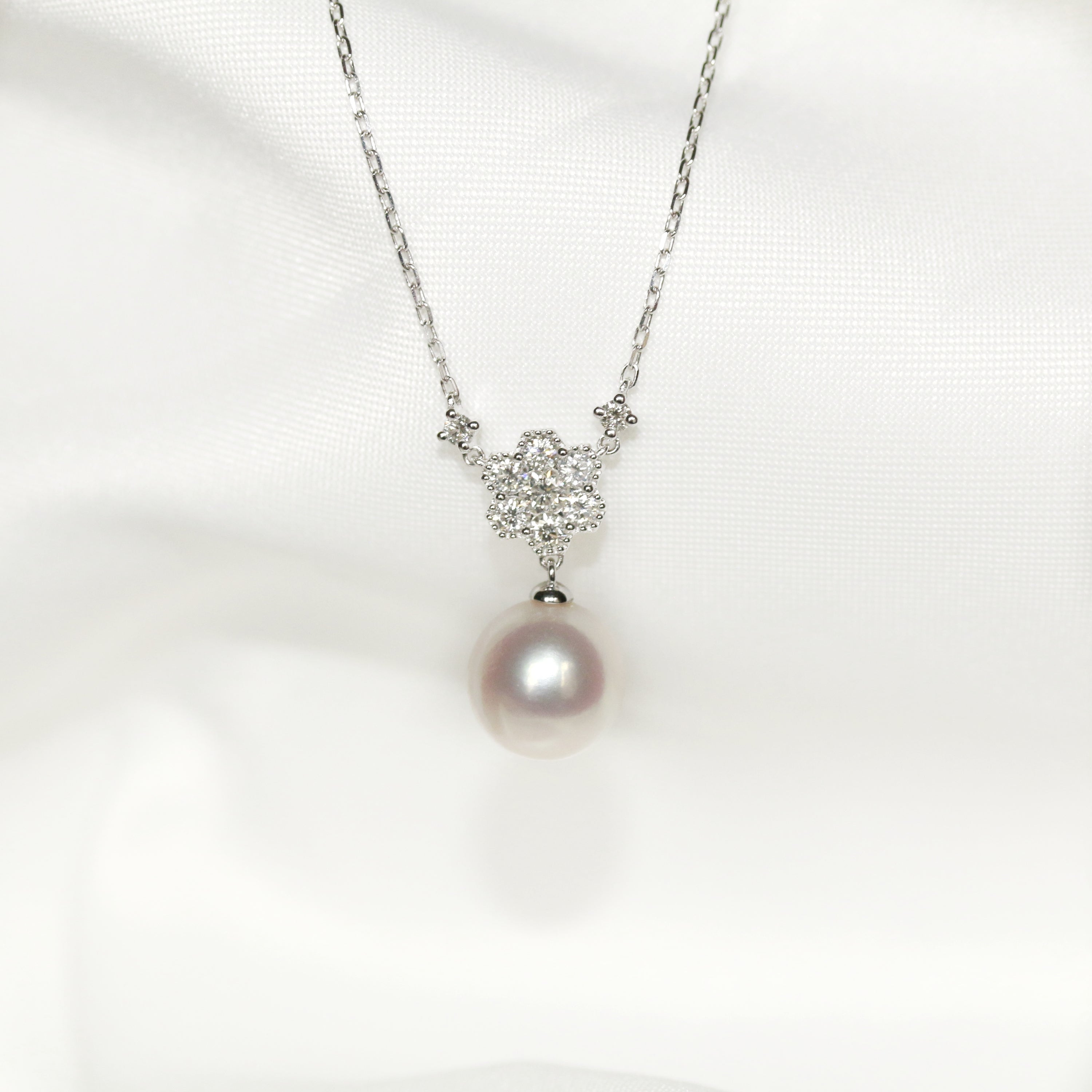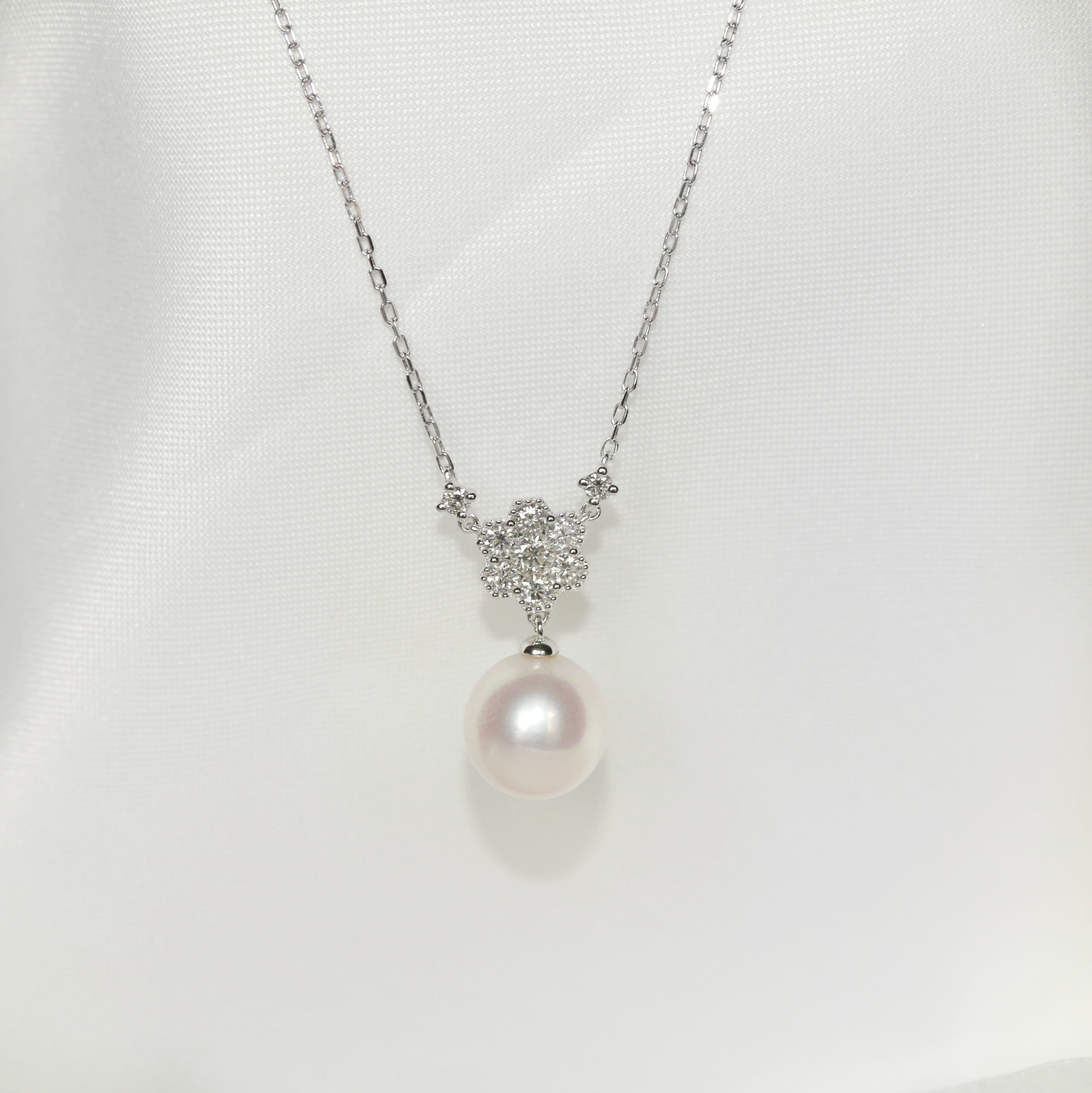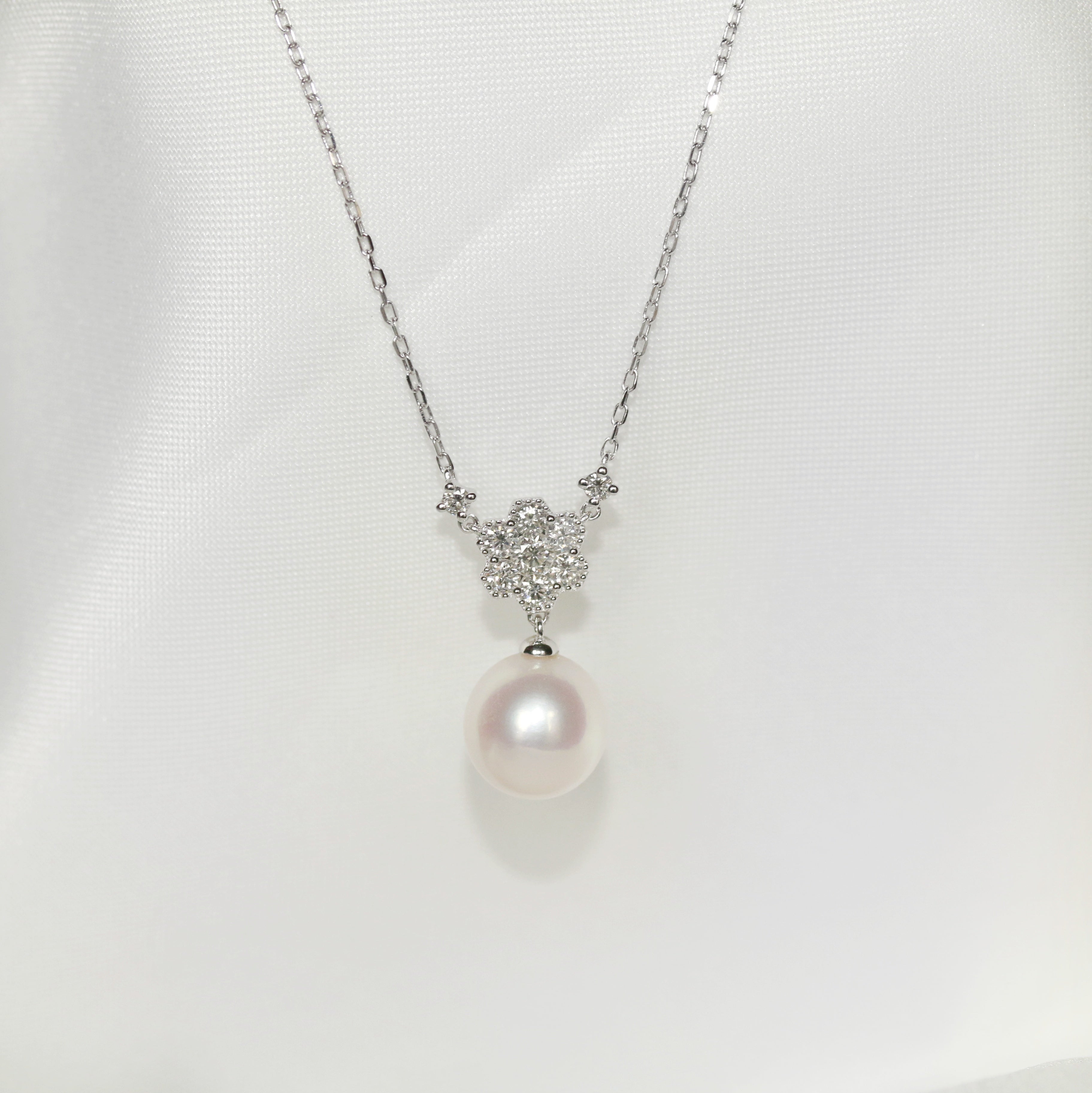 18ct White Gold Diamond & Pearl Necklace
