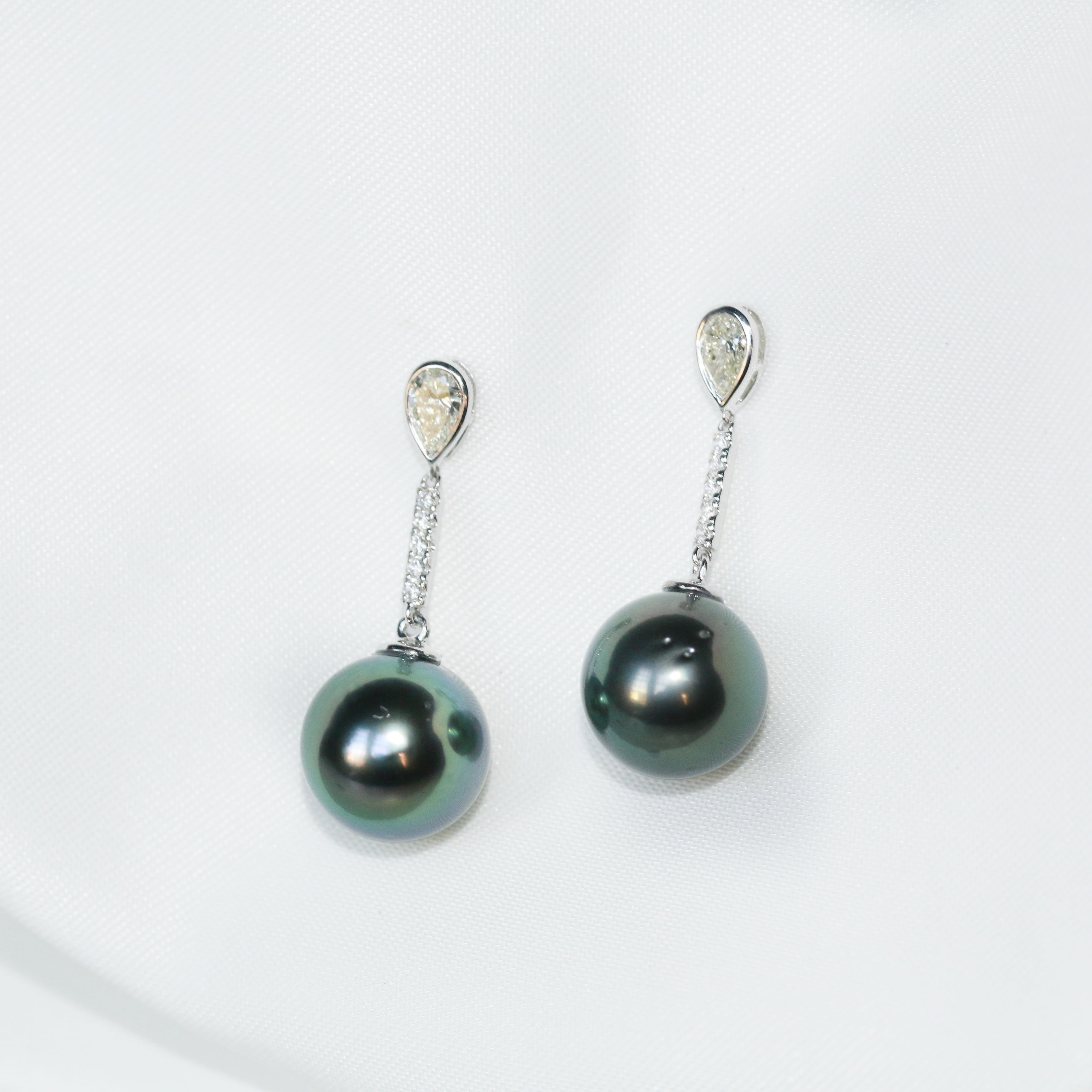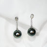 18ct White Gold Diamond & Tahitian Pearl Drop Earrings
