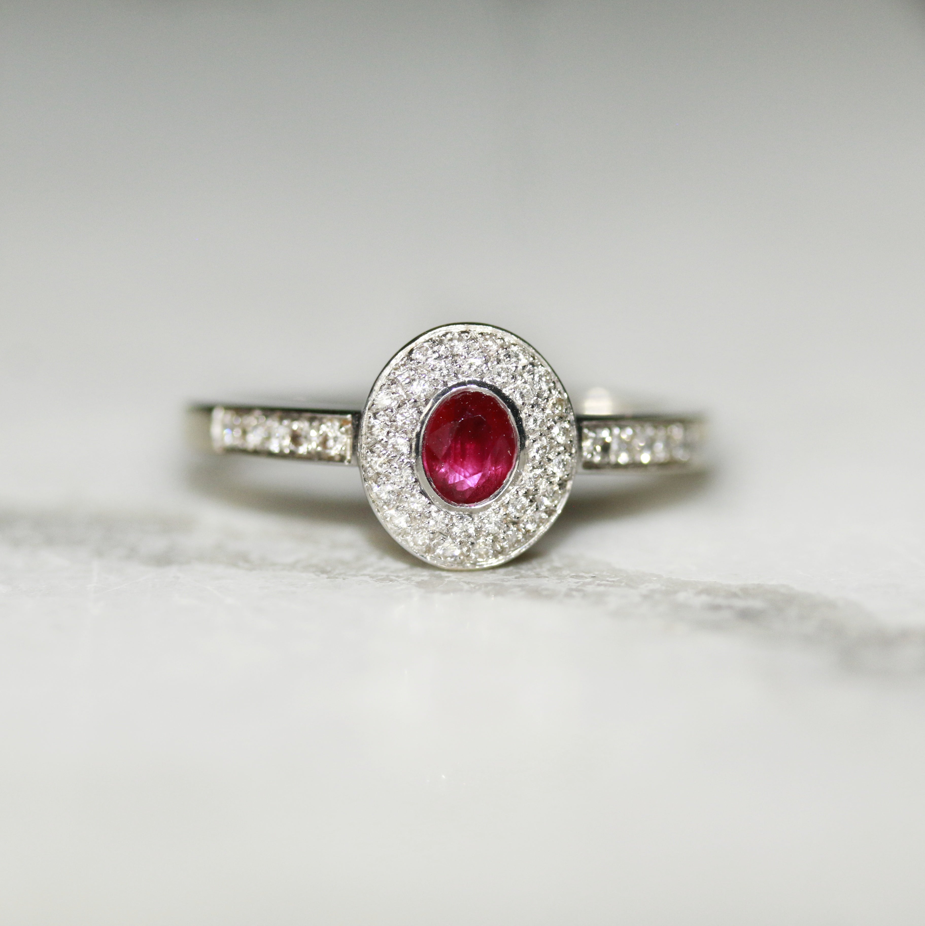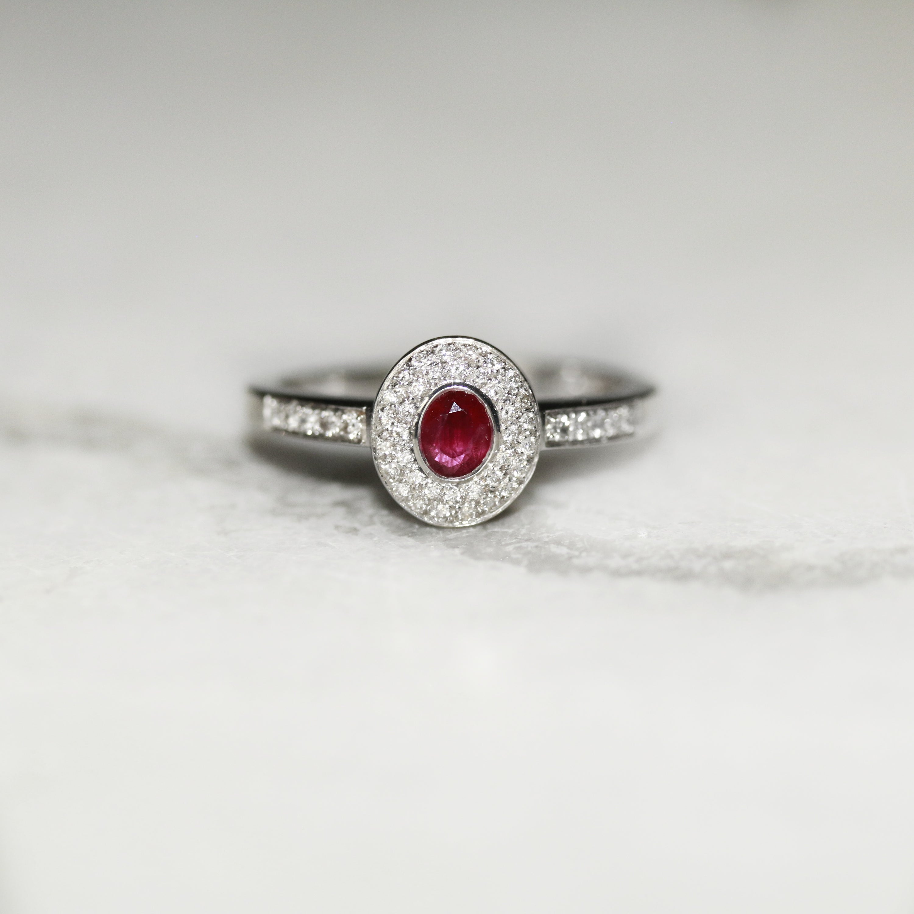 Home/Best Selling Products/18ct White Gold Ruby & Diamond Cluster Ring