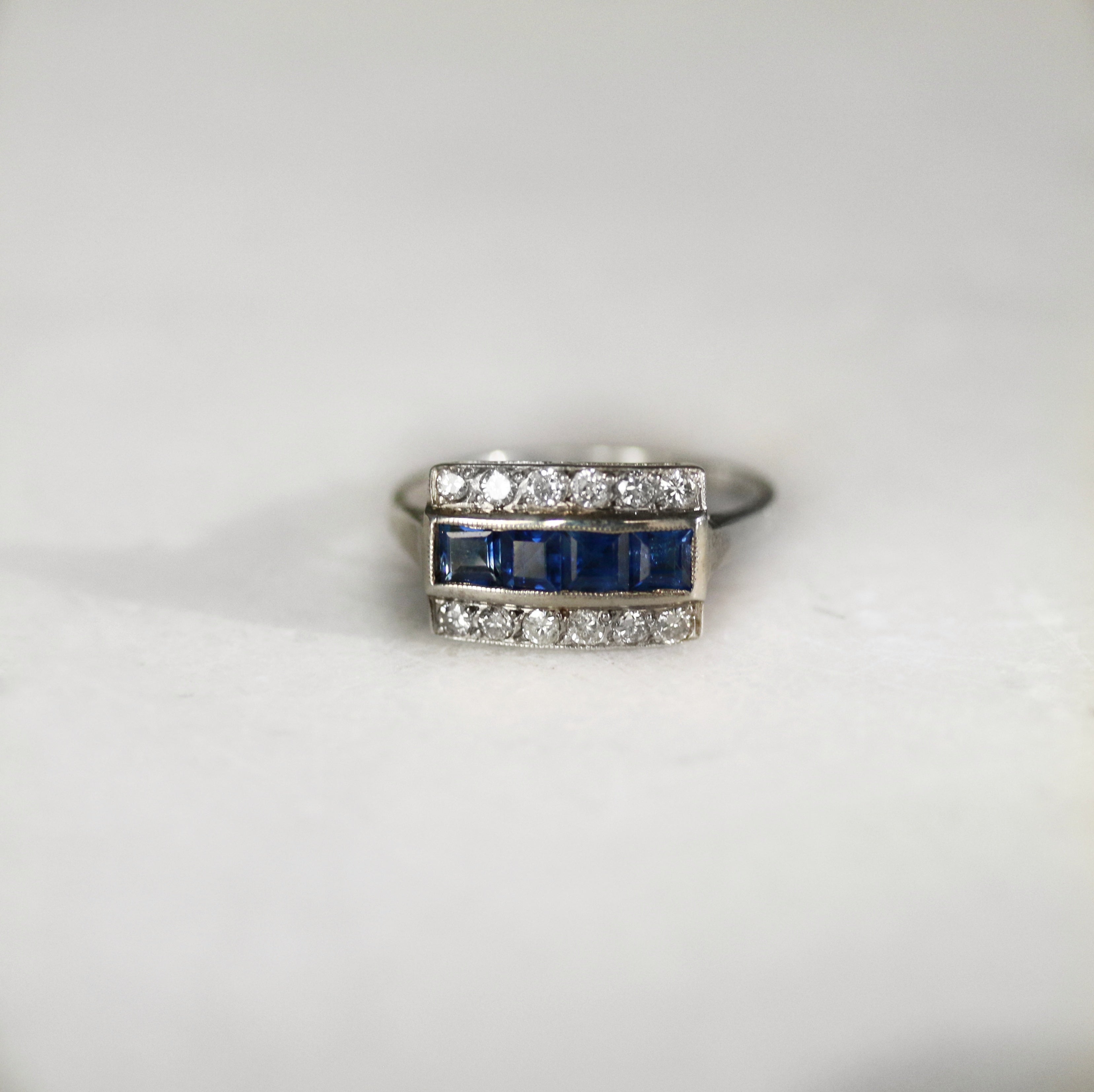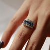 Elevate your jewellery collection with this stunning 18ct white gold dress ring, where deep blue sapphires take centre stage in a sophisticated channel setting. Flanked by sparkling round brilliant cut diamonds on either side, the square cut sapphires create a striking linear design that catches the light beautifully. Perfect for special occasions or as a timeless everyday piece, this ring combines classic elegance with contemporary style.