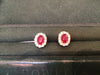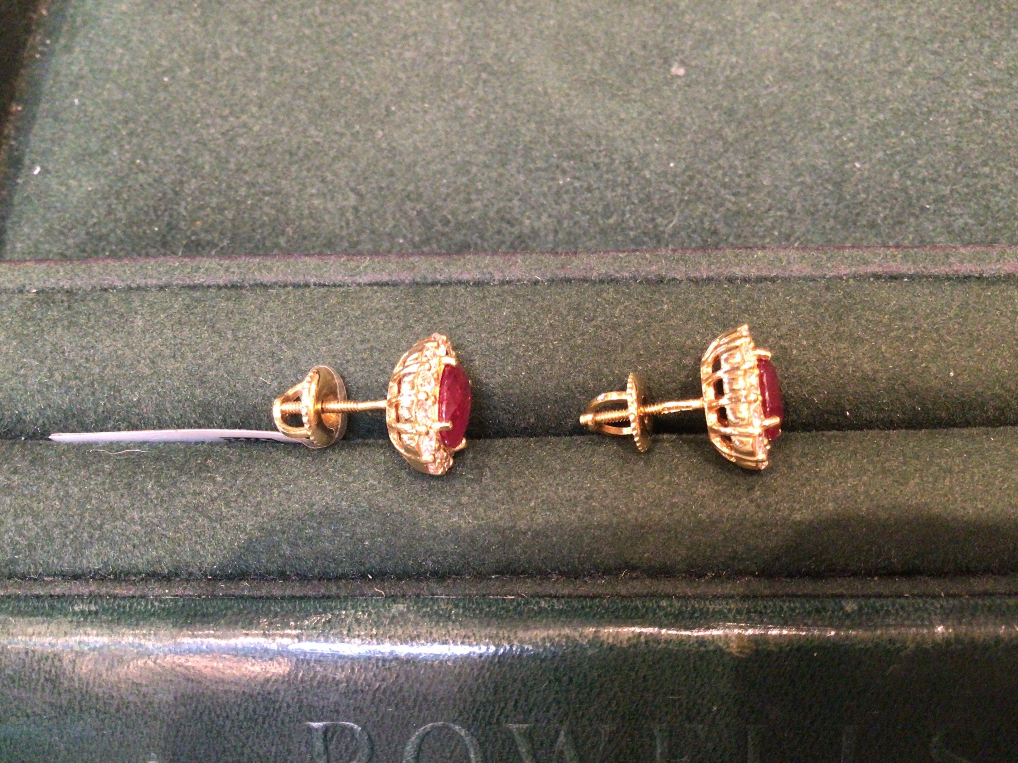 A pair of 18ct yellow gold Ruby & Diamond halo cluster earrings with screw on fittings.