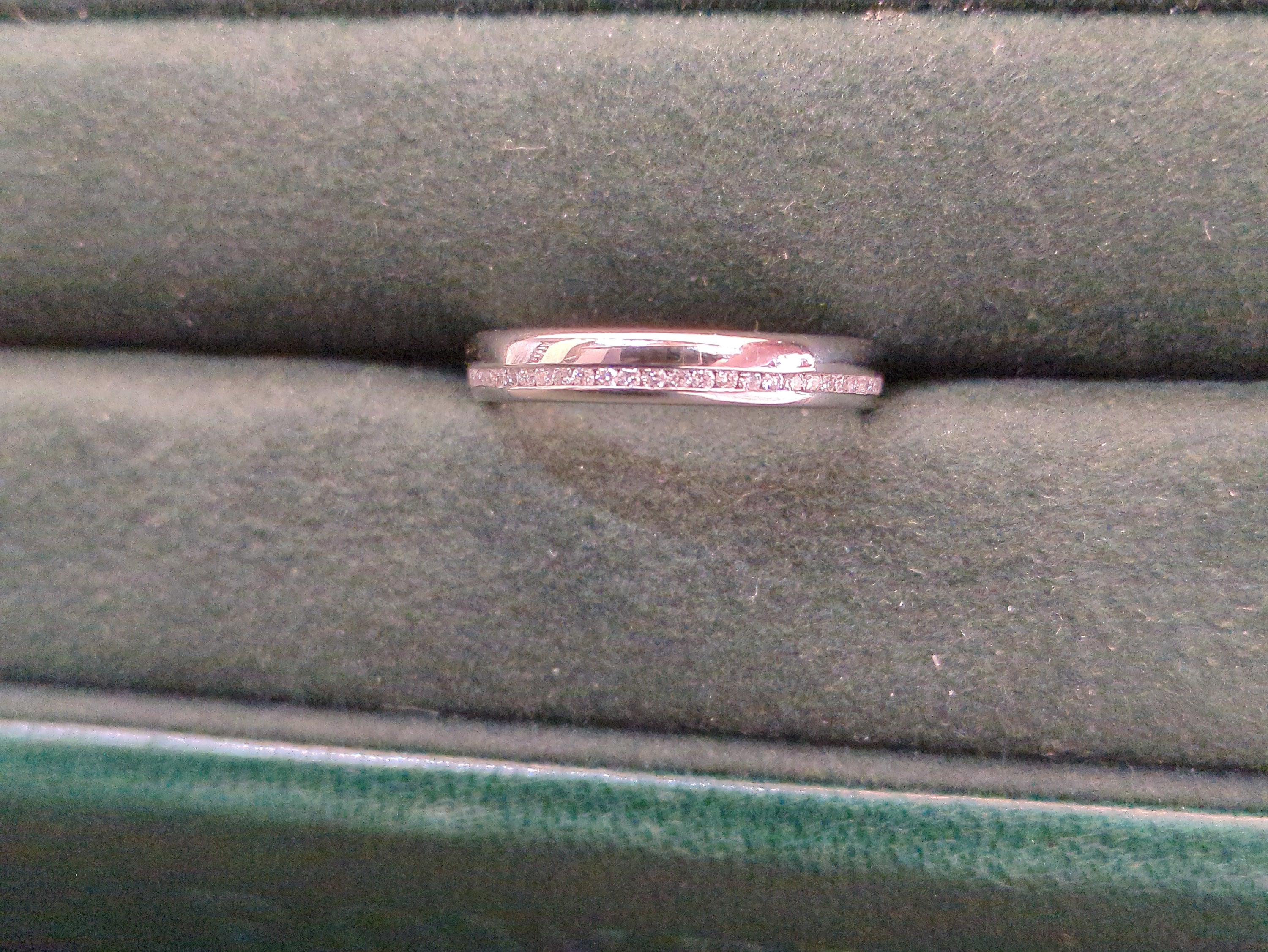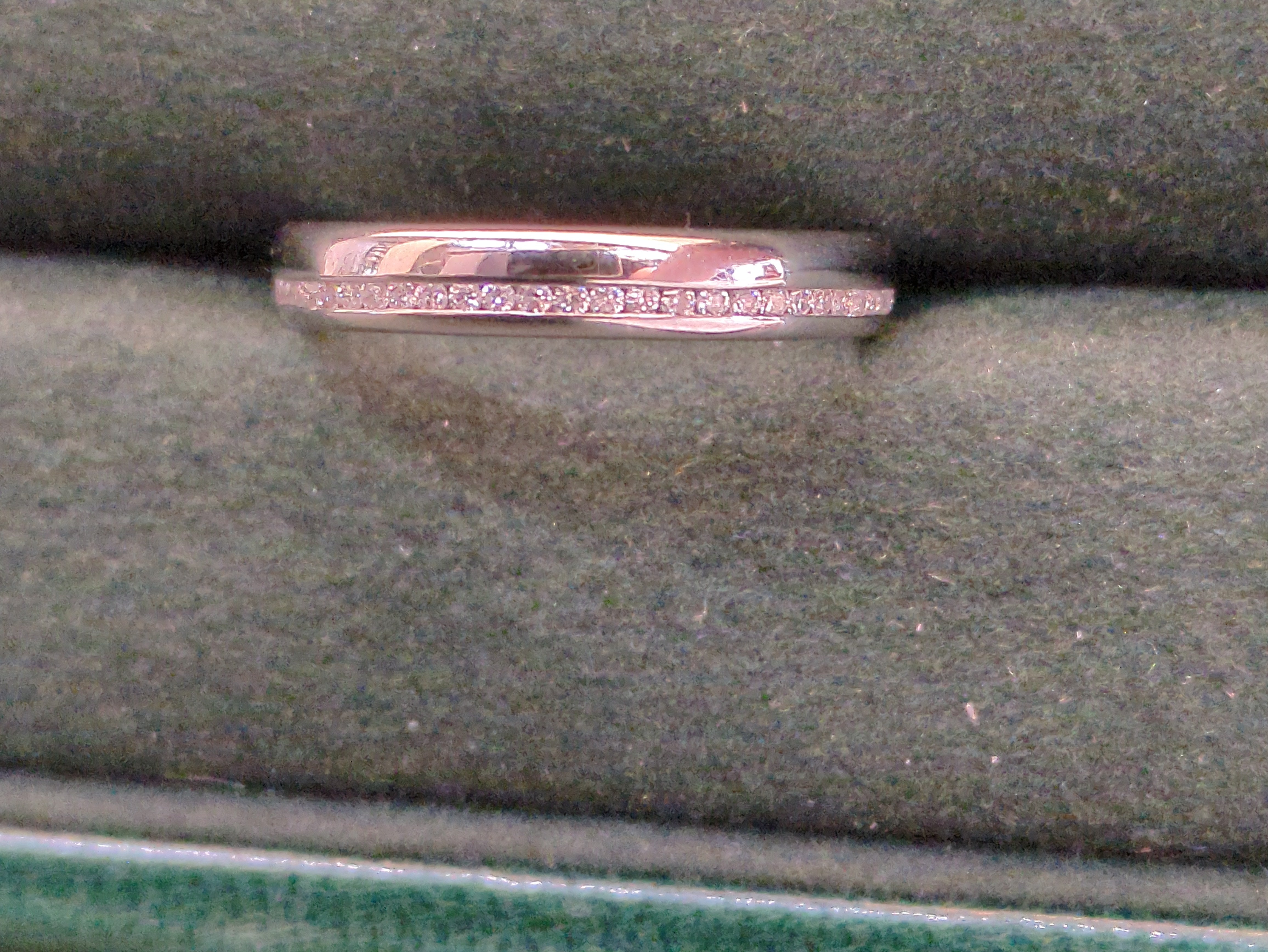 An 18ct white gold Diamond full eternity ring with round brilliant cut stones in a channel setting.