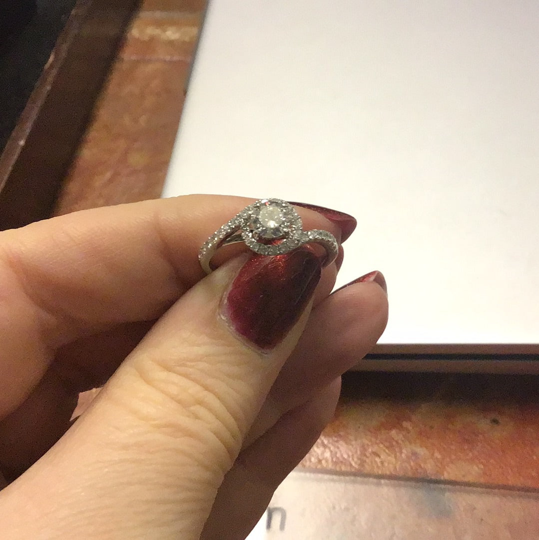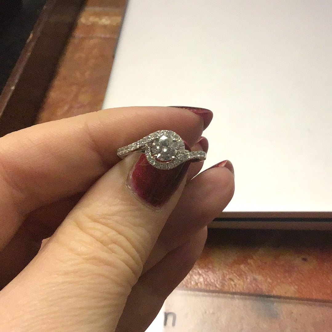 18ct WG 0.82ct Diamond Halo Twist Ring