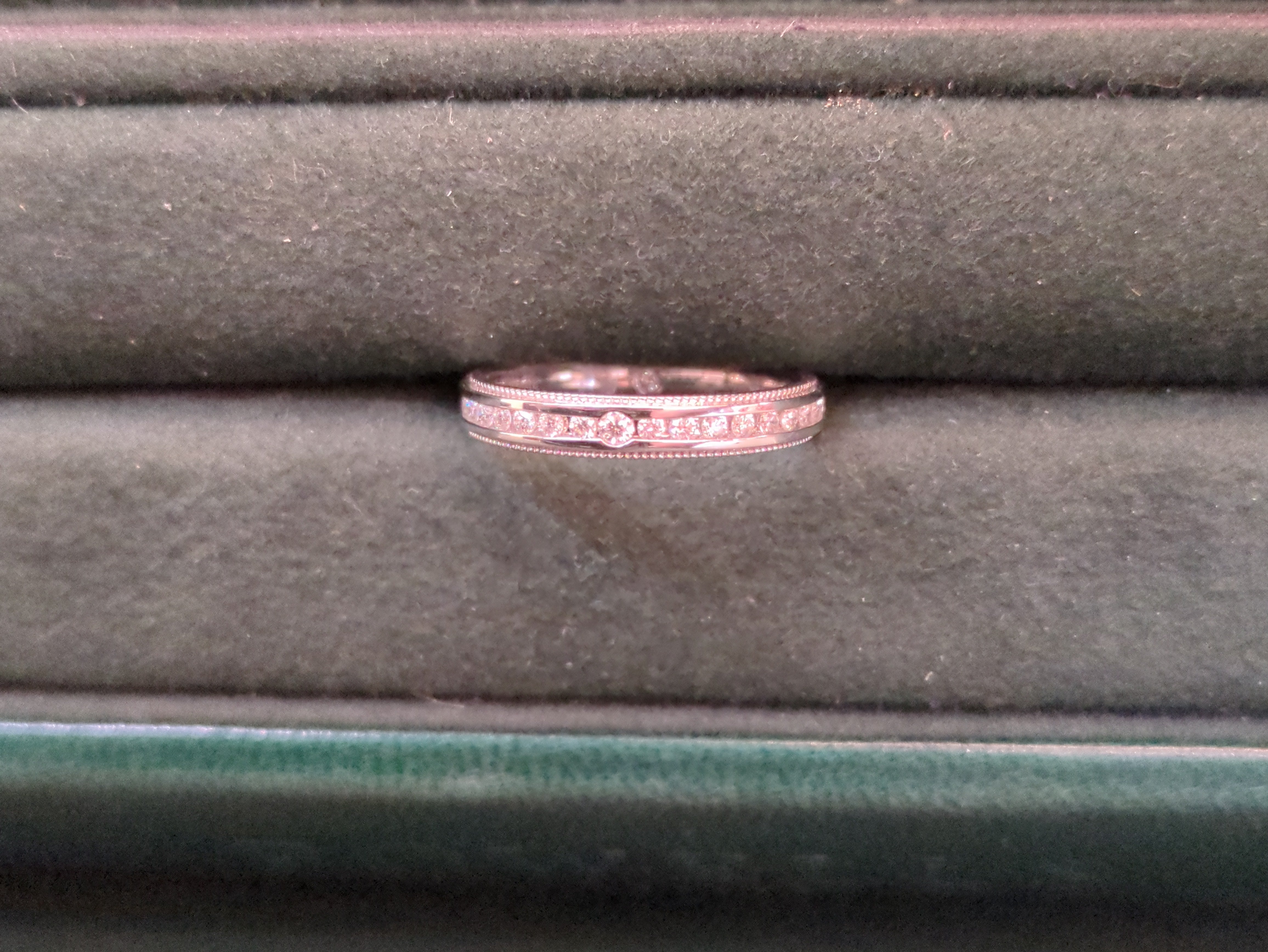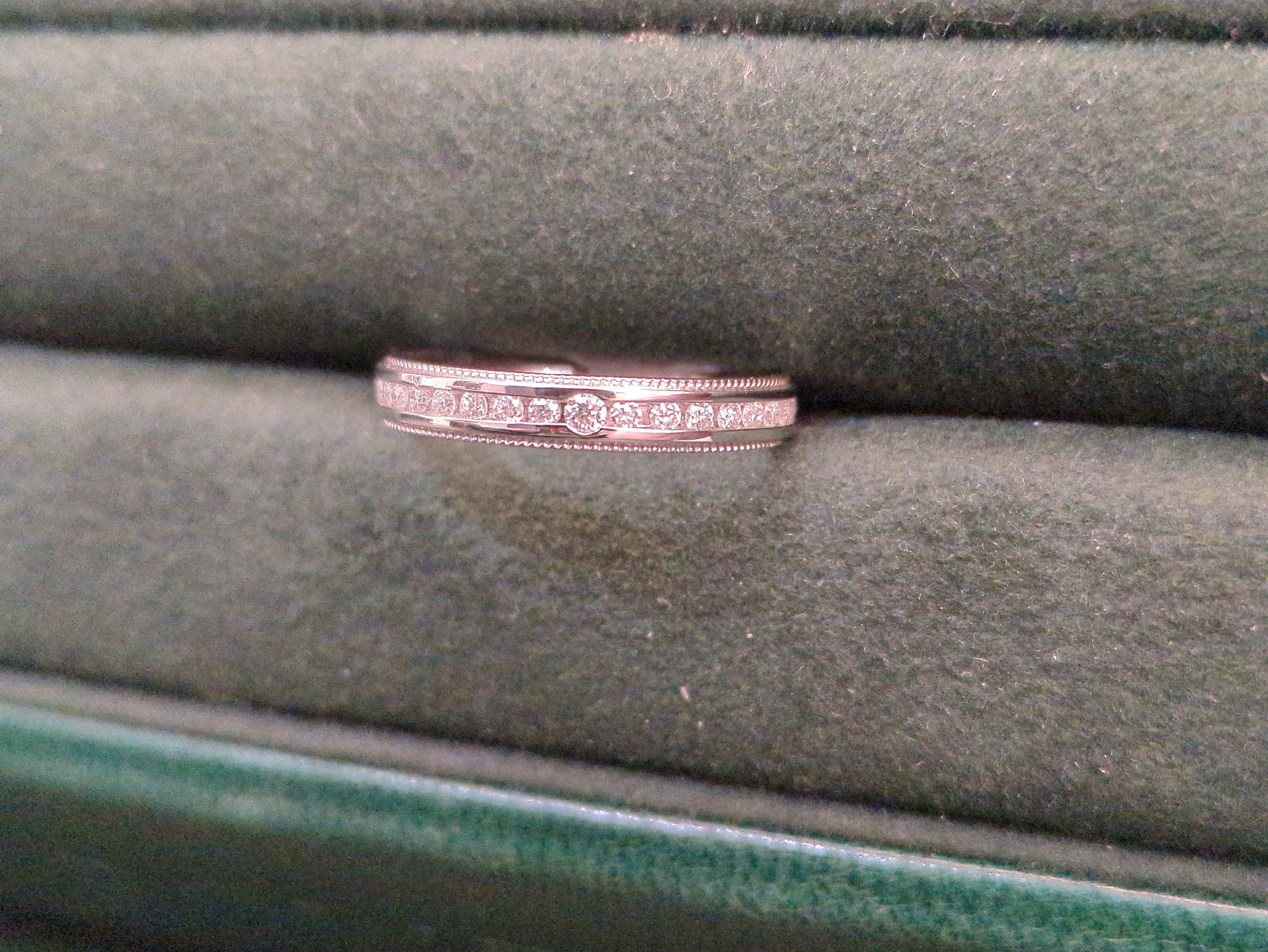 An 18ct white gold Diamond half eternity ring with a milgrain setting.