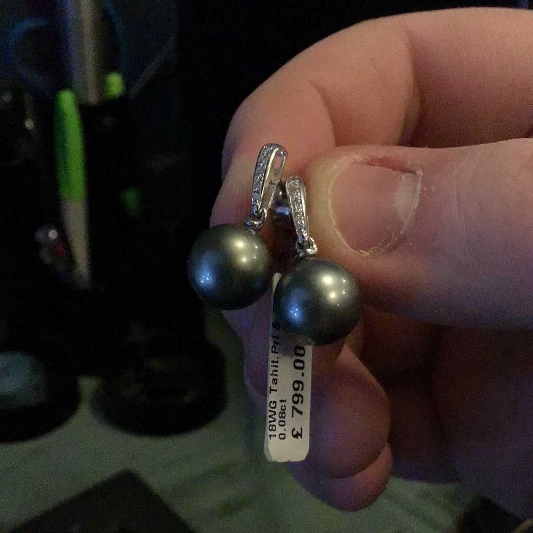 18ct WG Tahitian Pearl & Diamond Drop Earrings