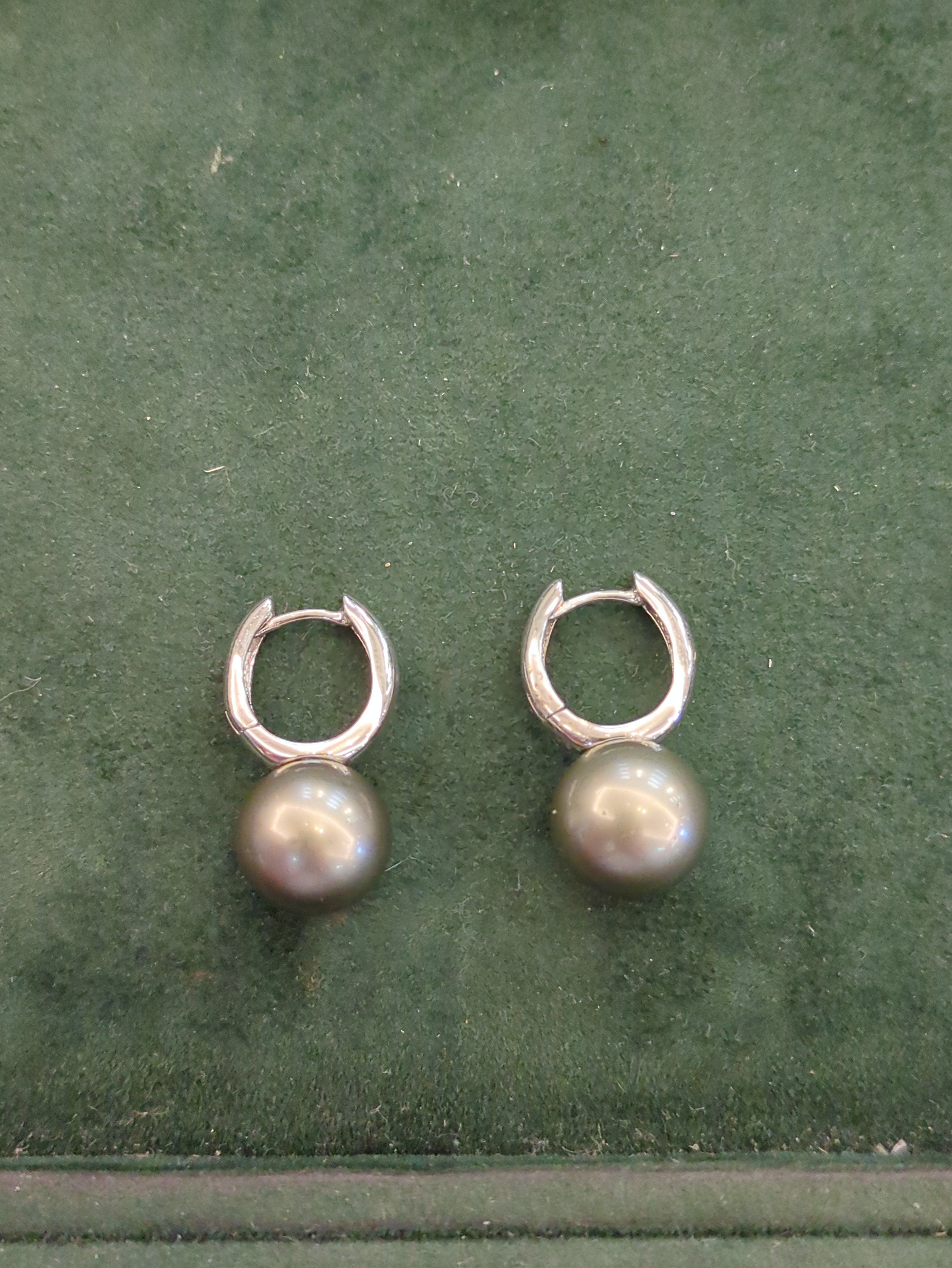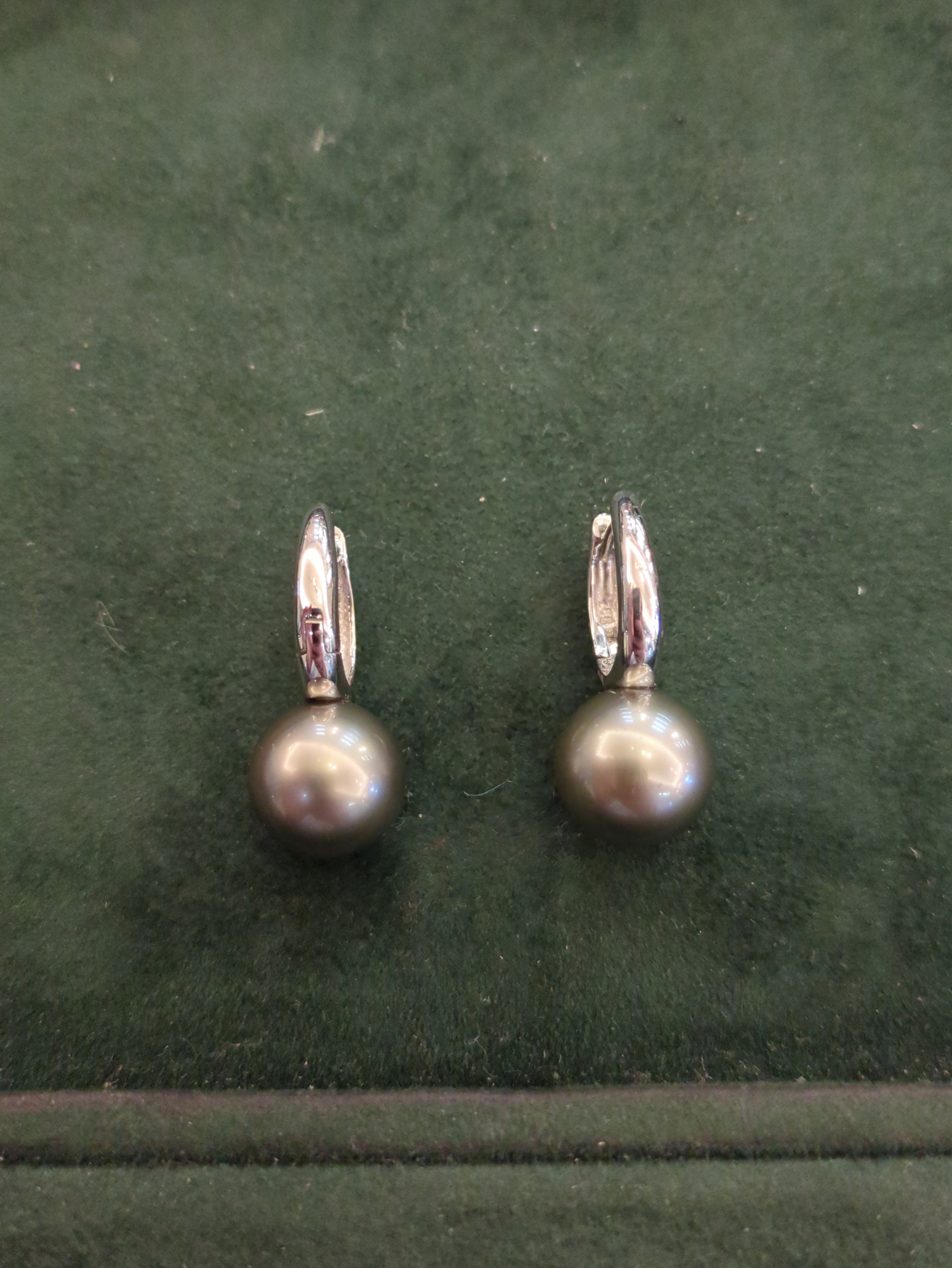 A pair of 18ct white gold Tahitian Pearl earrings.