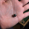 A dark grey Tahitian pearl pendant threaded onto an 18ct white gold fine trace link chain.