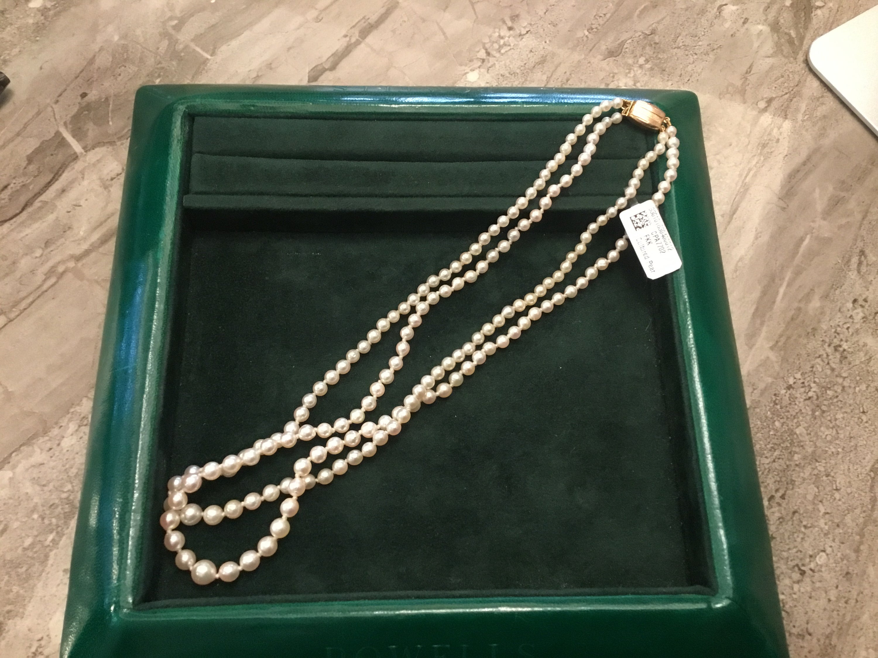 A two row cultured pearl necklace with a 9ct yellow gold clasp.