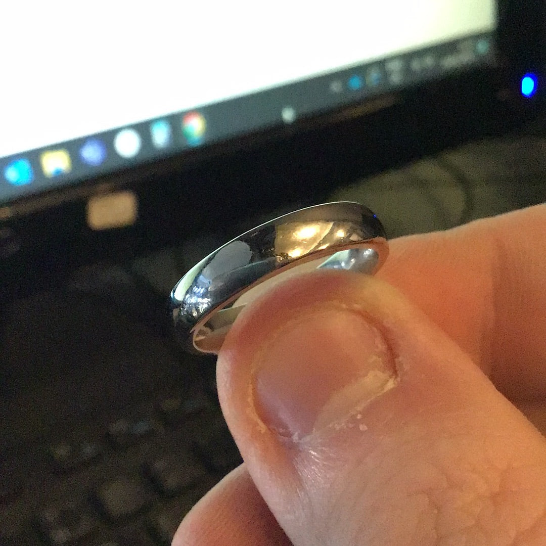 A platinum court shaped wedding band of 4mm in width. Weight approximately 7.5g
