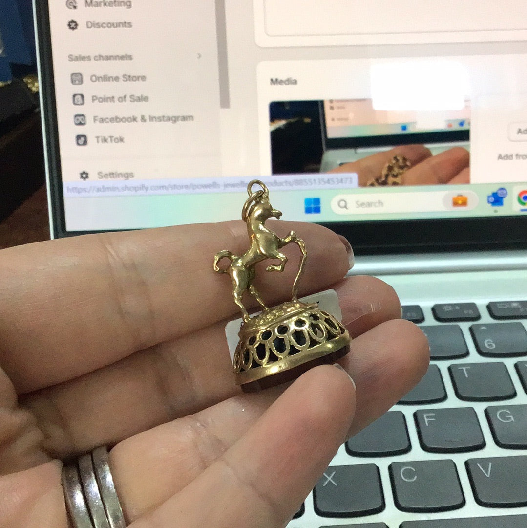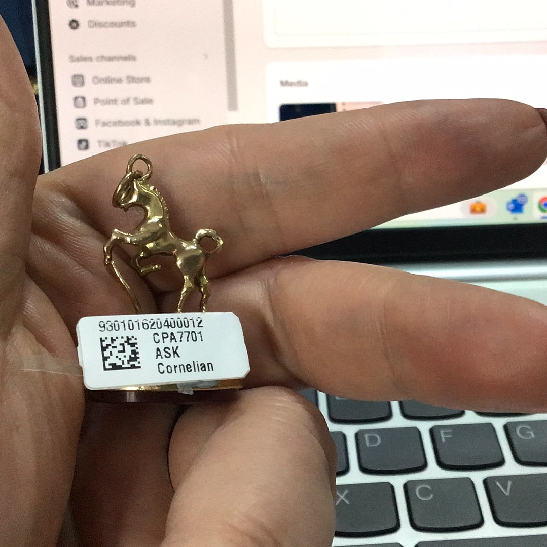 Home/Best Selling Products/9ct YG Horse Fob Charm Cornelian