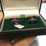 A pair of 9ct yellow gold blue enamel cufflinks with the Masonic logo on.