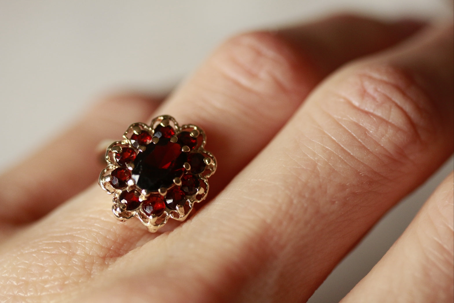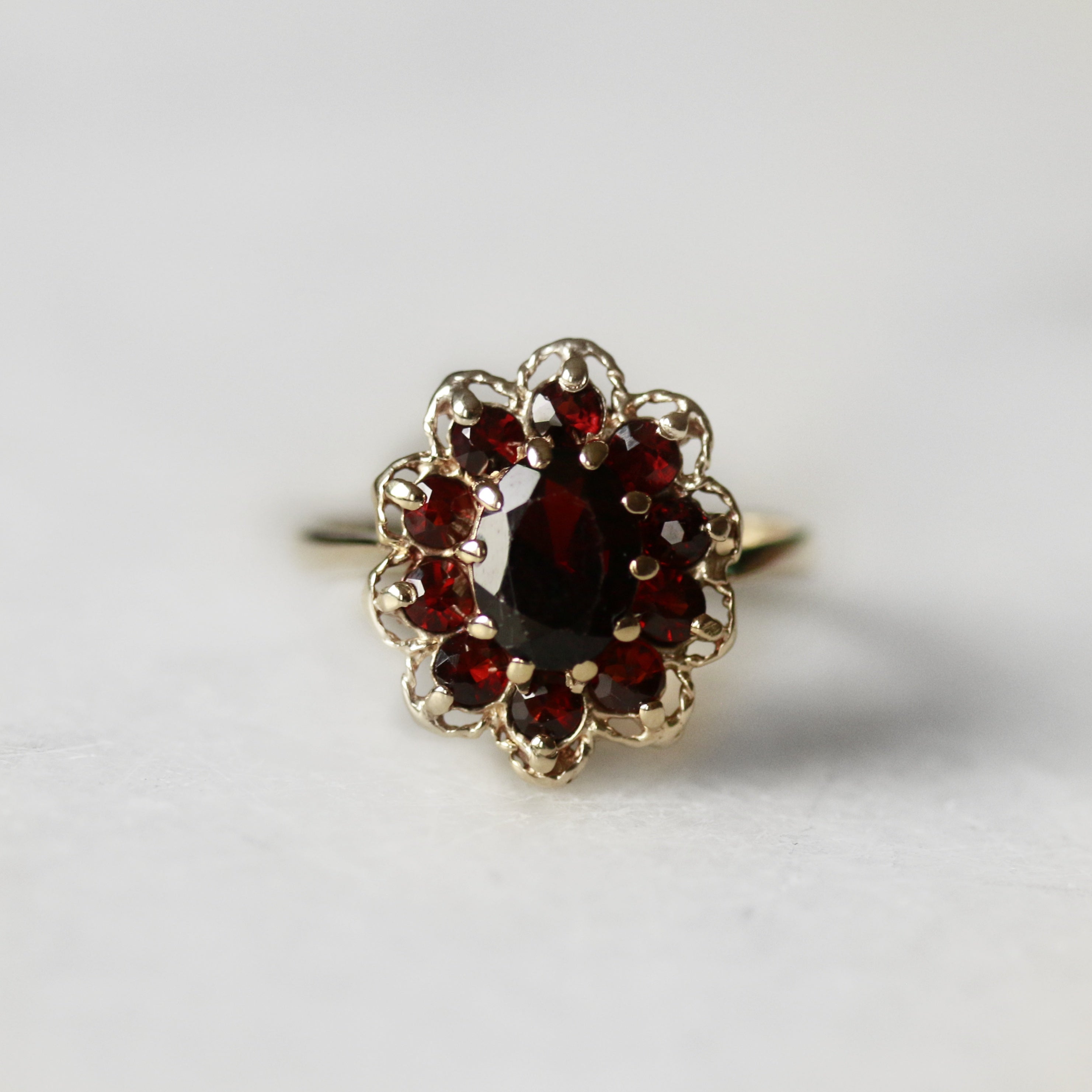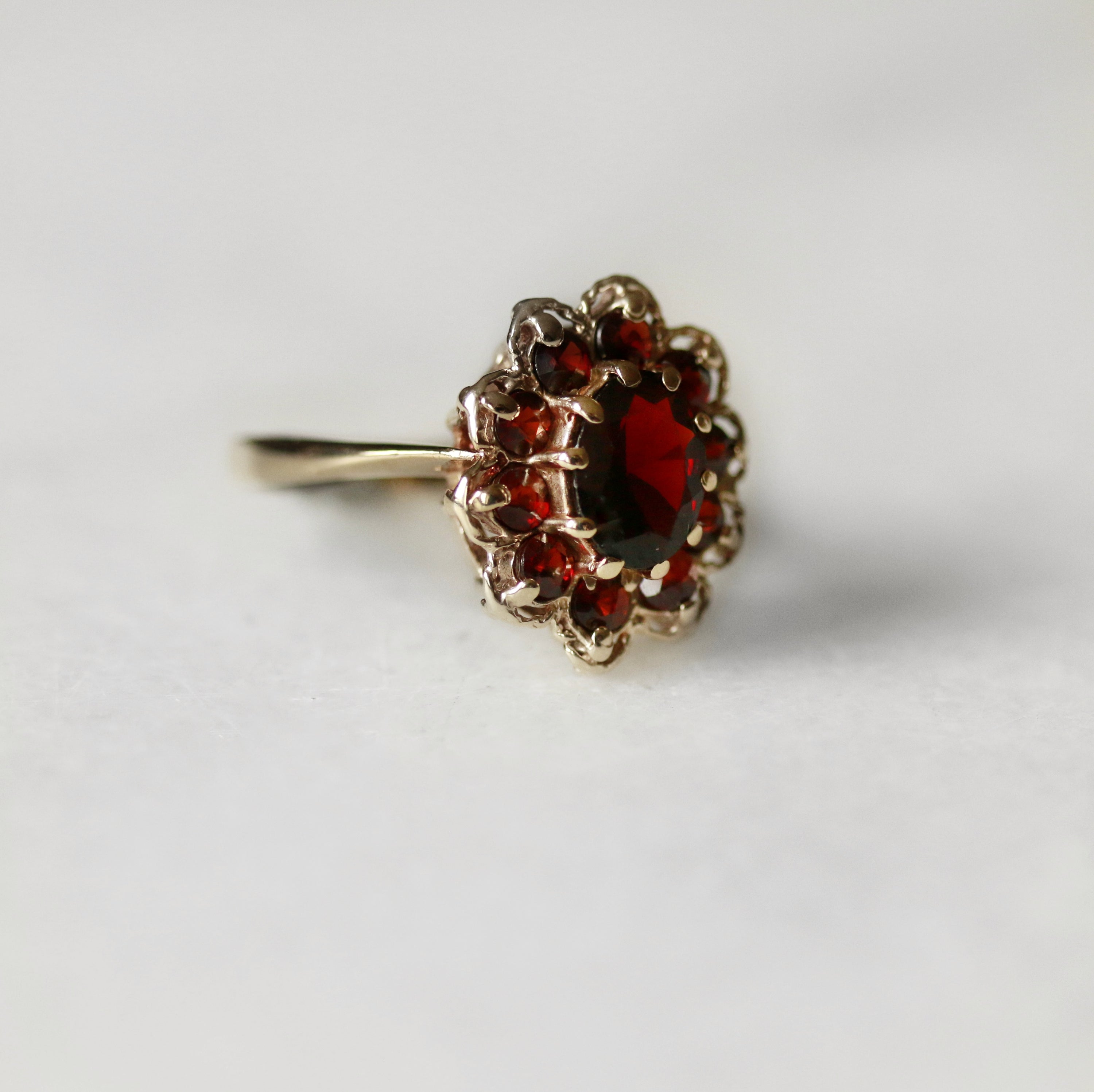9ct Yellow Gold Garnet Cluster Ring
