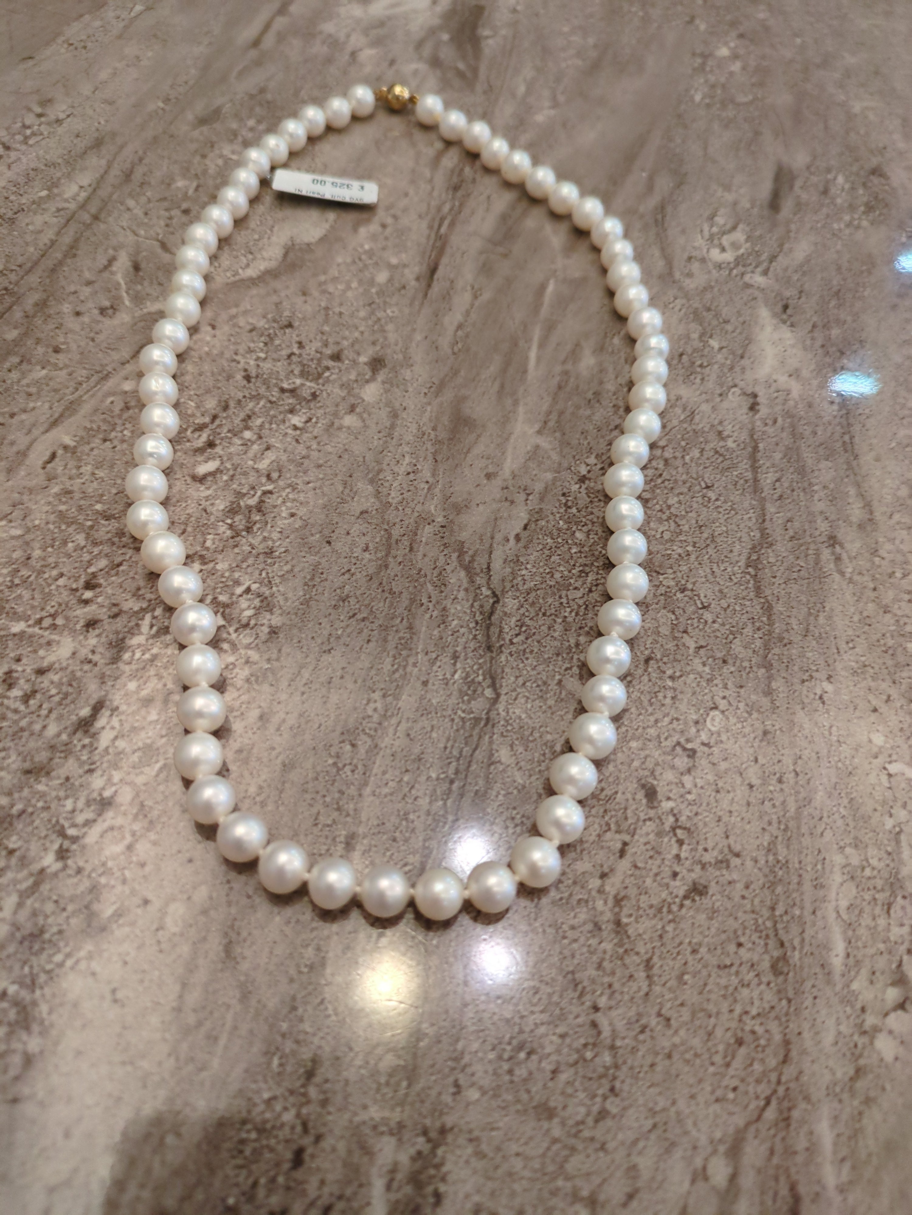 9ct yellow gold cultured white pearl necklace 16"