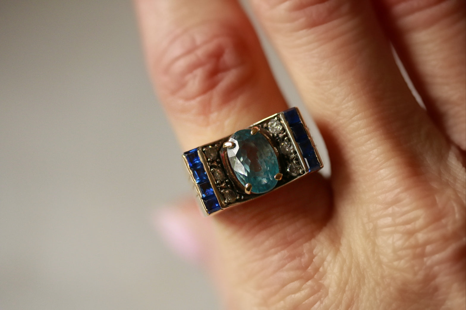 Blue Zircon, Sapphire & Diamond Dress Ring