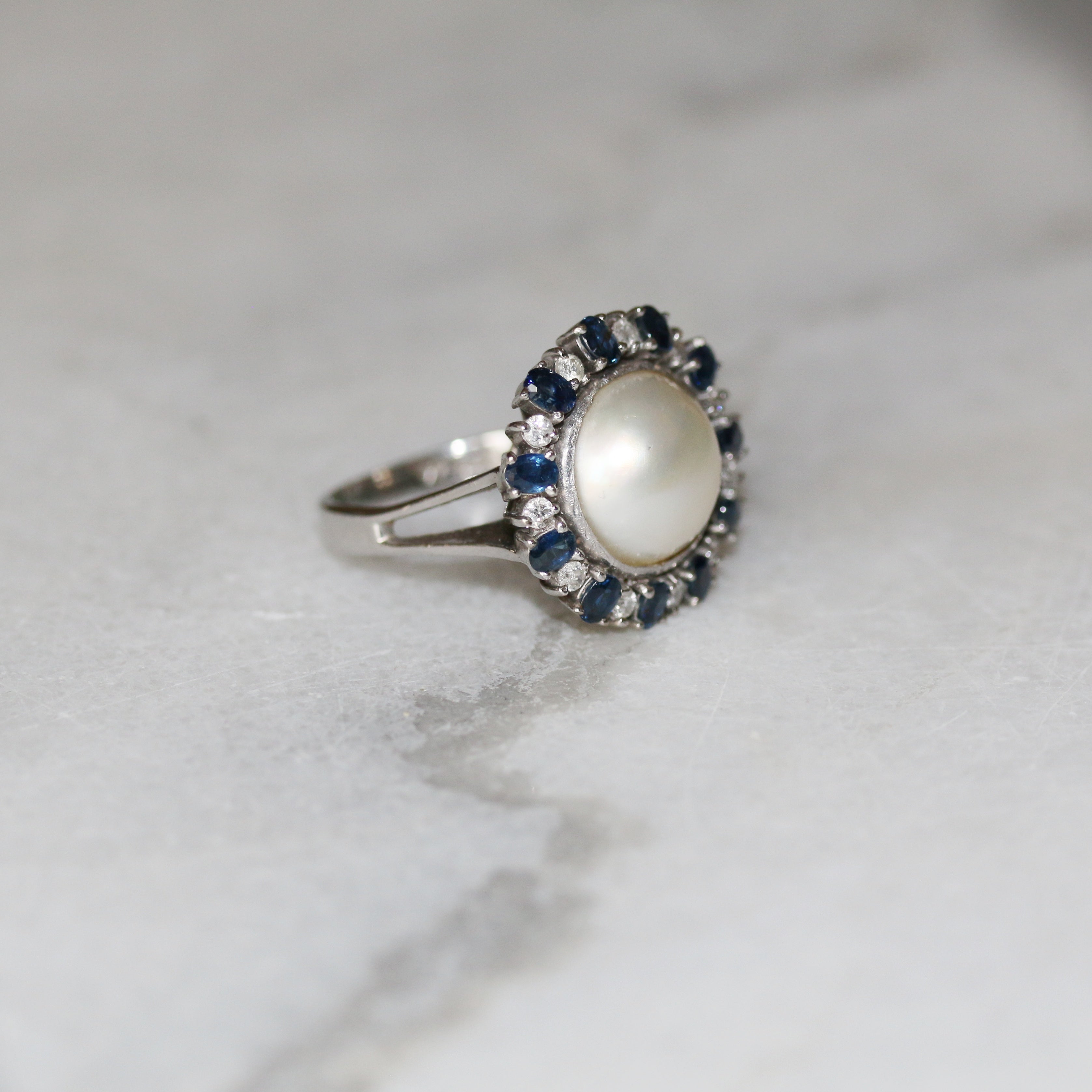 Pearl, Diamond & Sapphire Ring