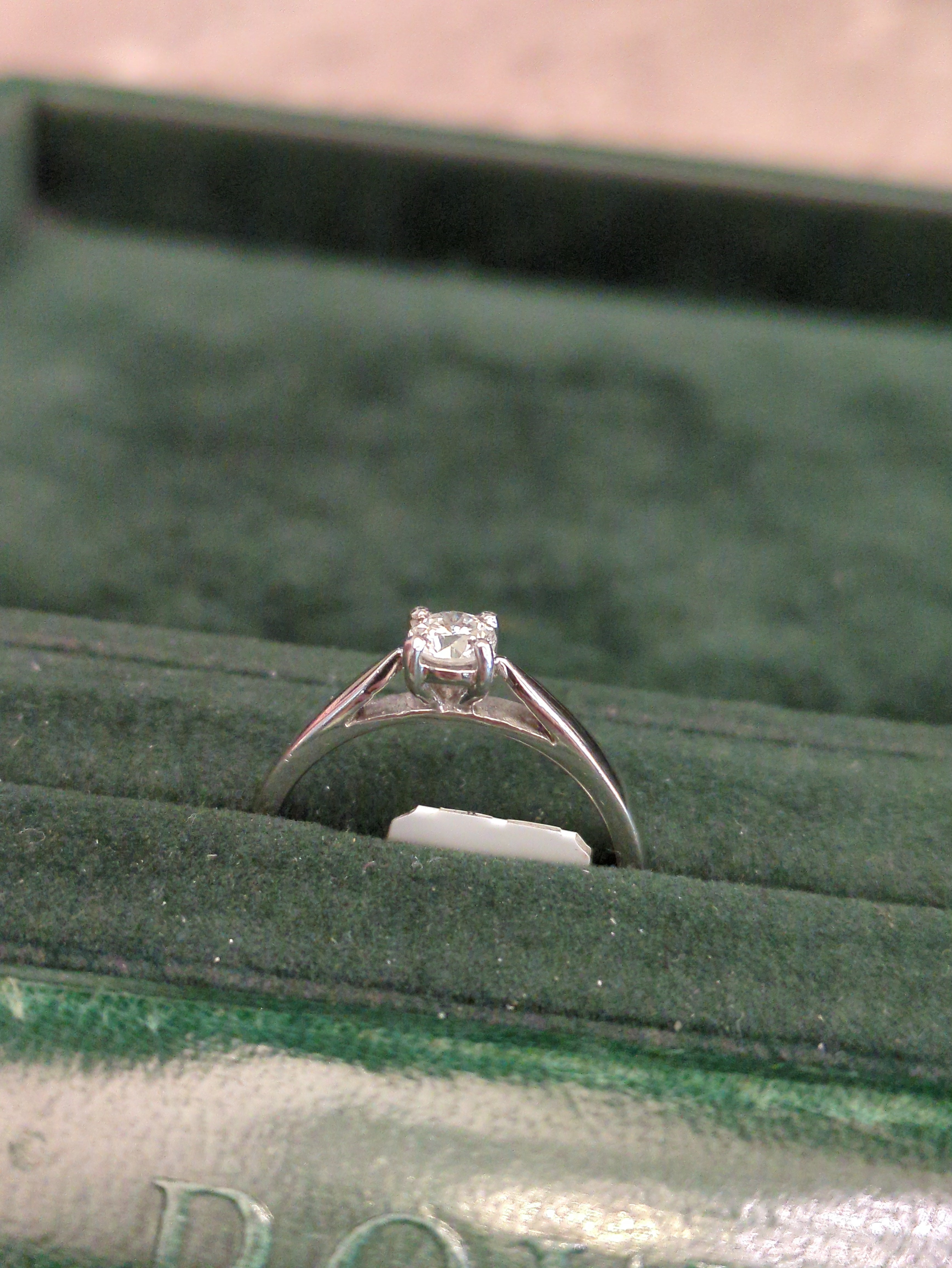 A platinum Diamond solitaire ring with a round brilliant cut centre stone in a standard four claw setting.