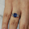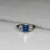 Platinum Emerald Cut Sapphire & Diamond Three Stone Ring