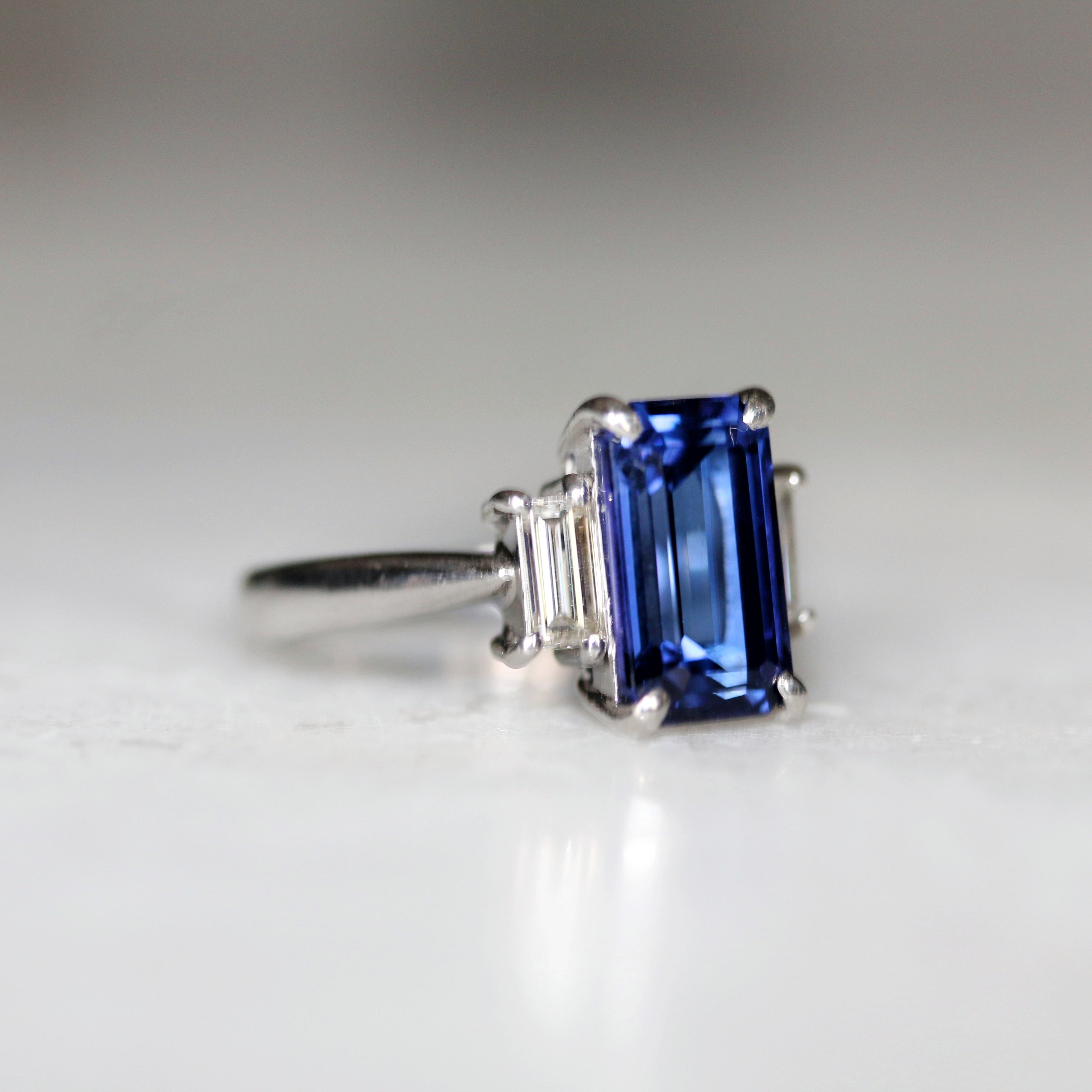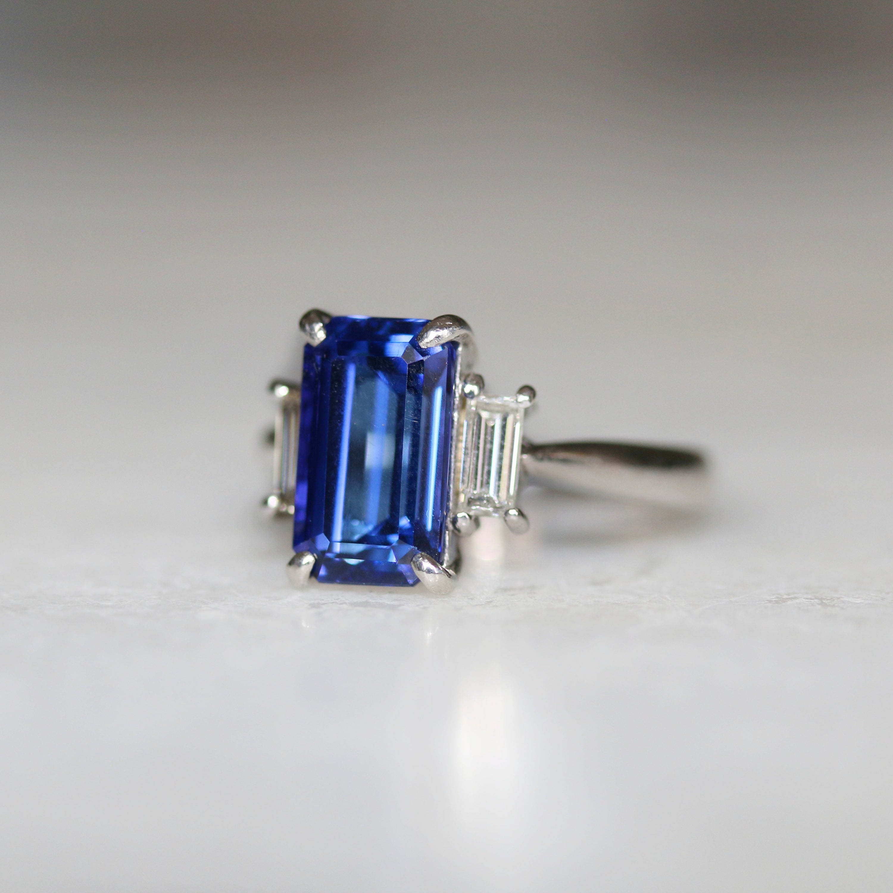 Discover the elegance of this platinum ring featuring a stunning 3.95ct tanzanite centerpiece, beautifully complemented by 0.51ct of sparkling diamonds. A timeless piece that combines luxury and sophistication for any occasion.